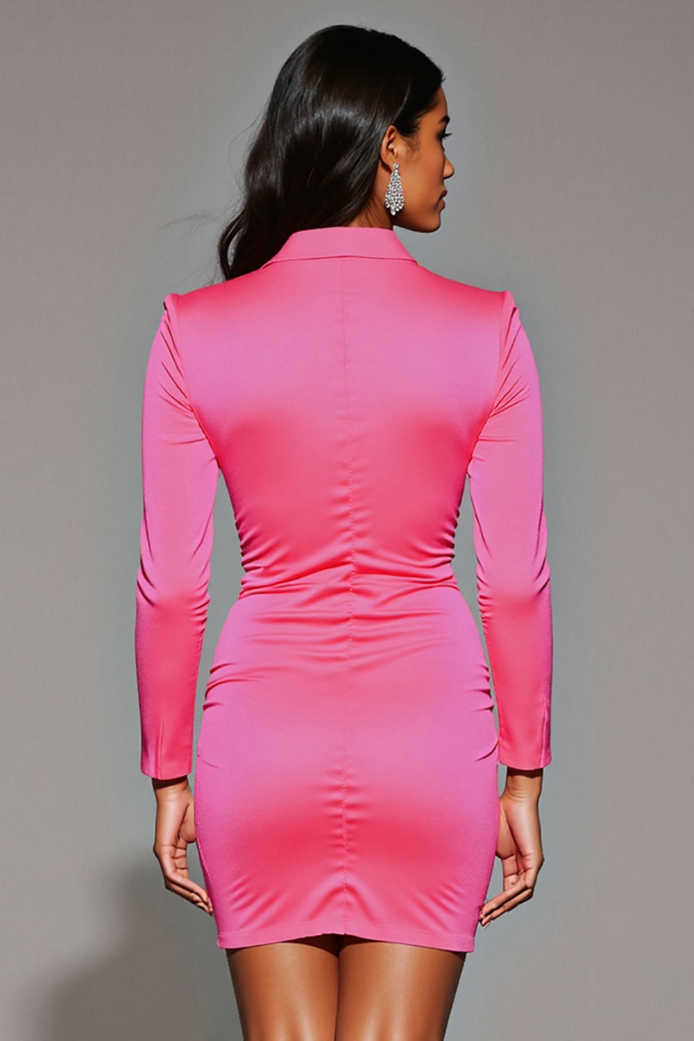 Fuchsia Notched Lapel Tight Short Work Dress with Sleeves