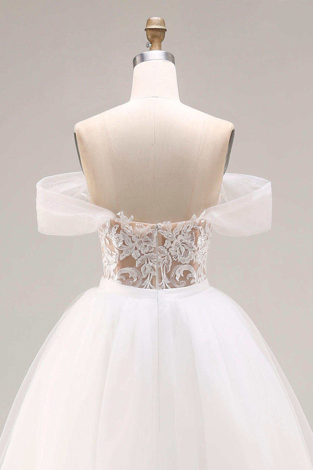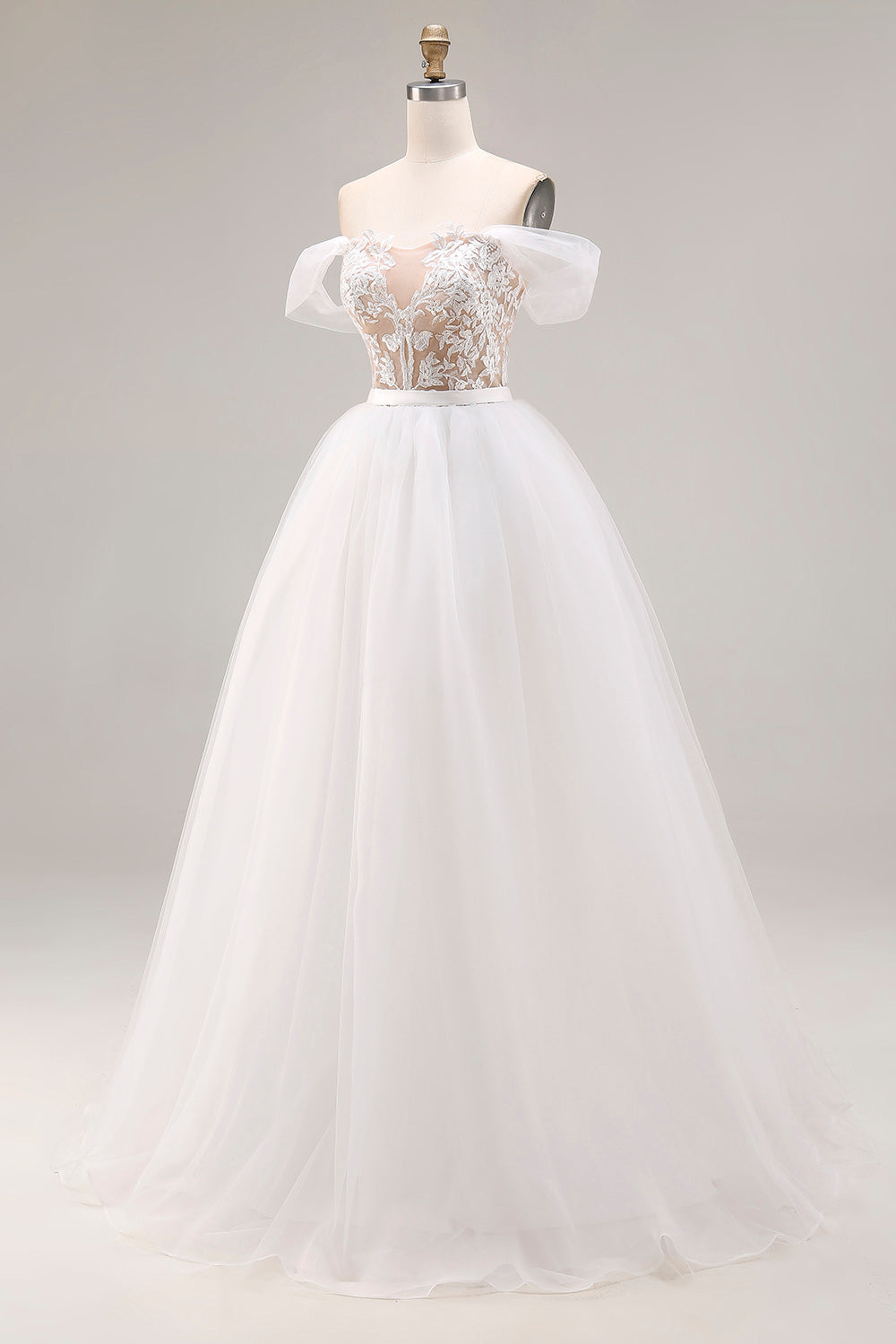 Ivory Off The Shoulder Embroidered Tulle Long Ball Gown Wedding Dress