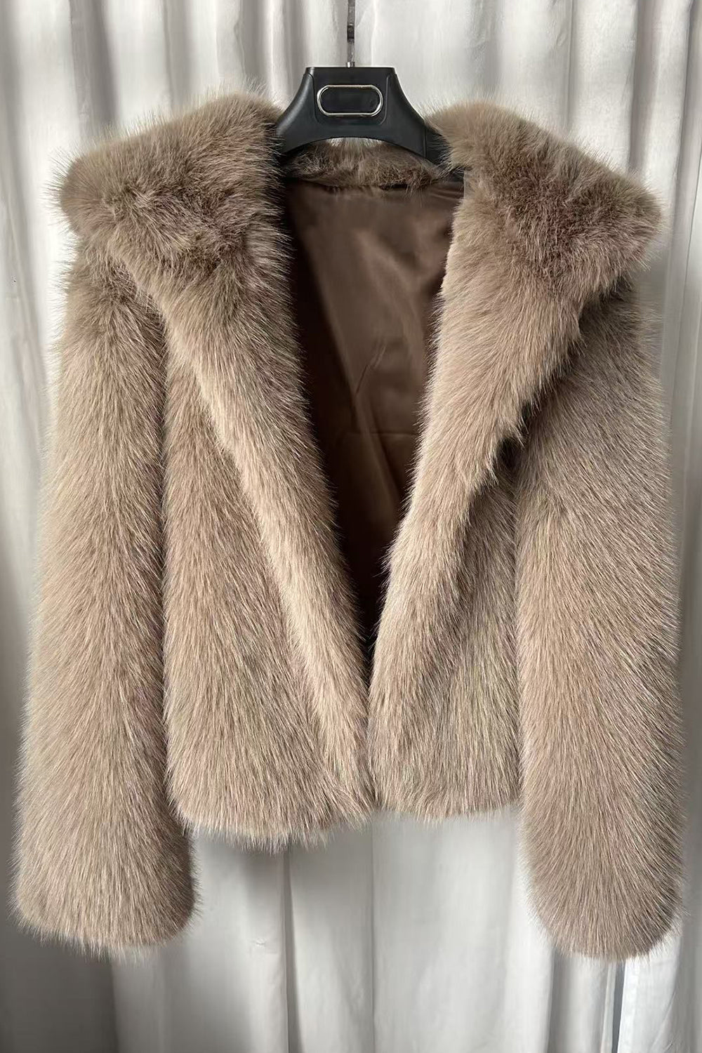 Khaki Hooded Faux Fur Short Women Coat