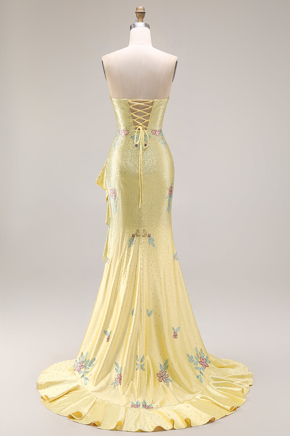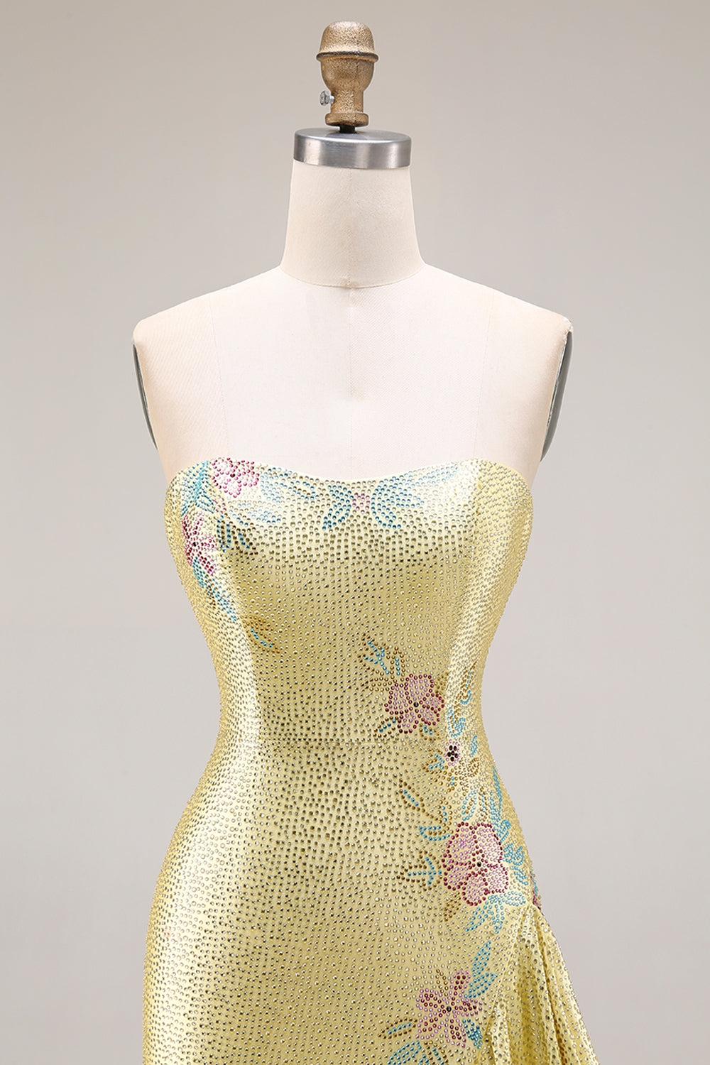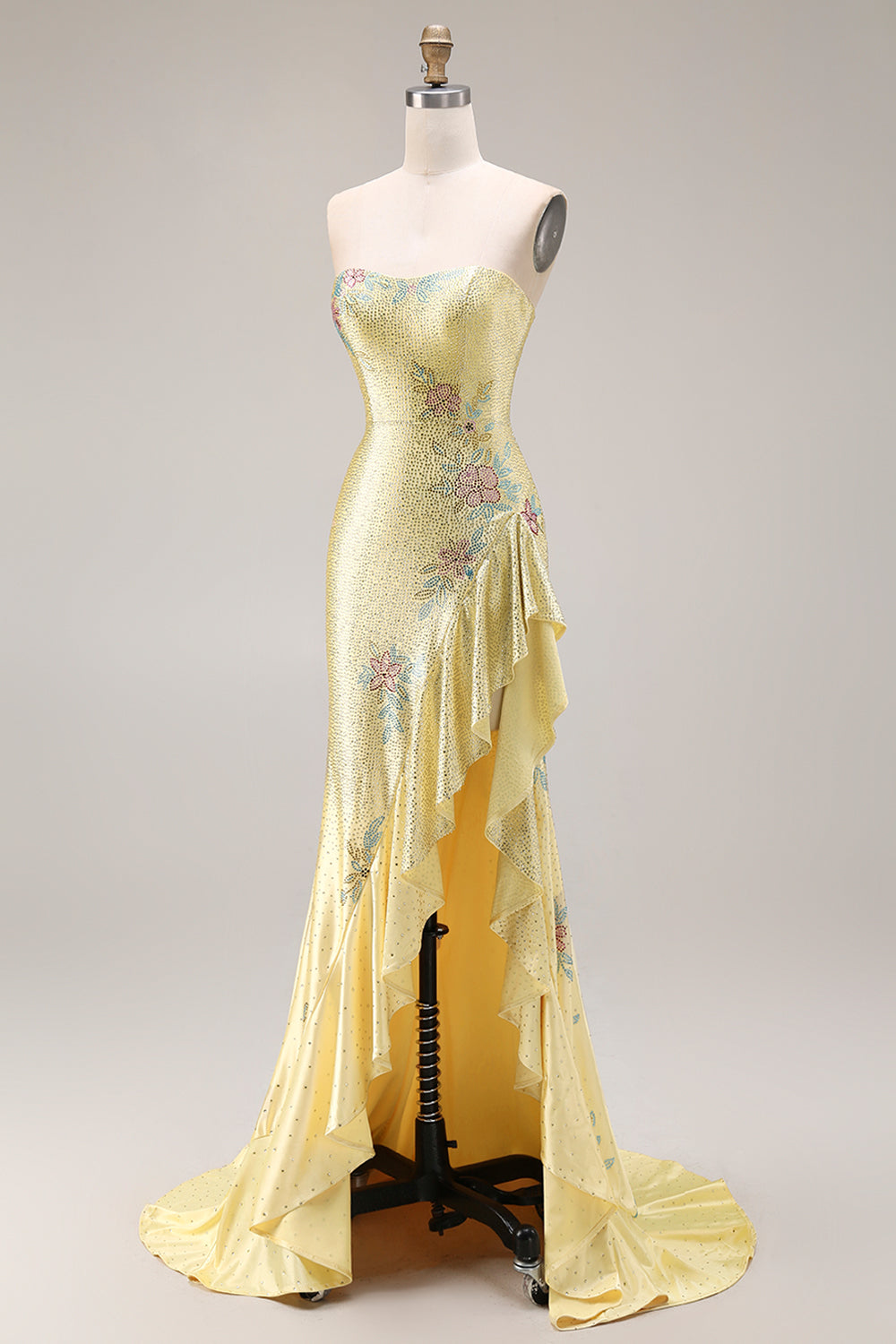 Yelllow Beaded Mermaid Long Prom Dress with Ruffled Slit
