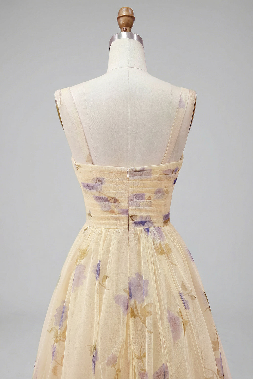 Yellow Floral A Line Pleated Printed Long Prom Dress with Ruffles