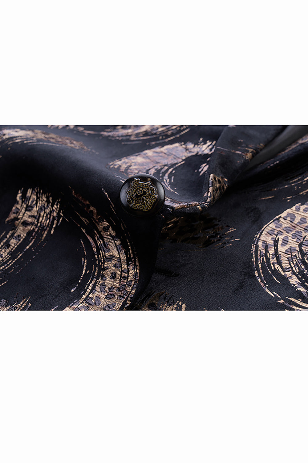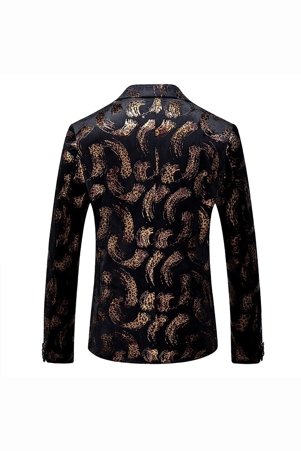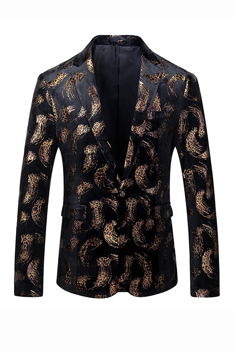 Black Golden Leopard Notched Lapel One Button Men's Blazer
