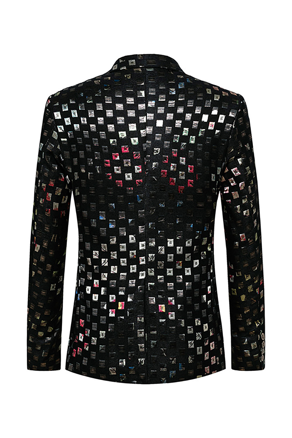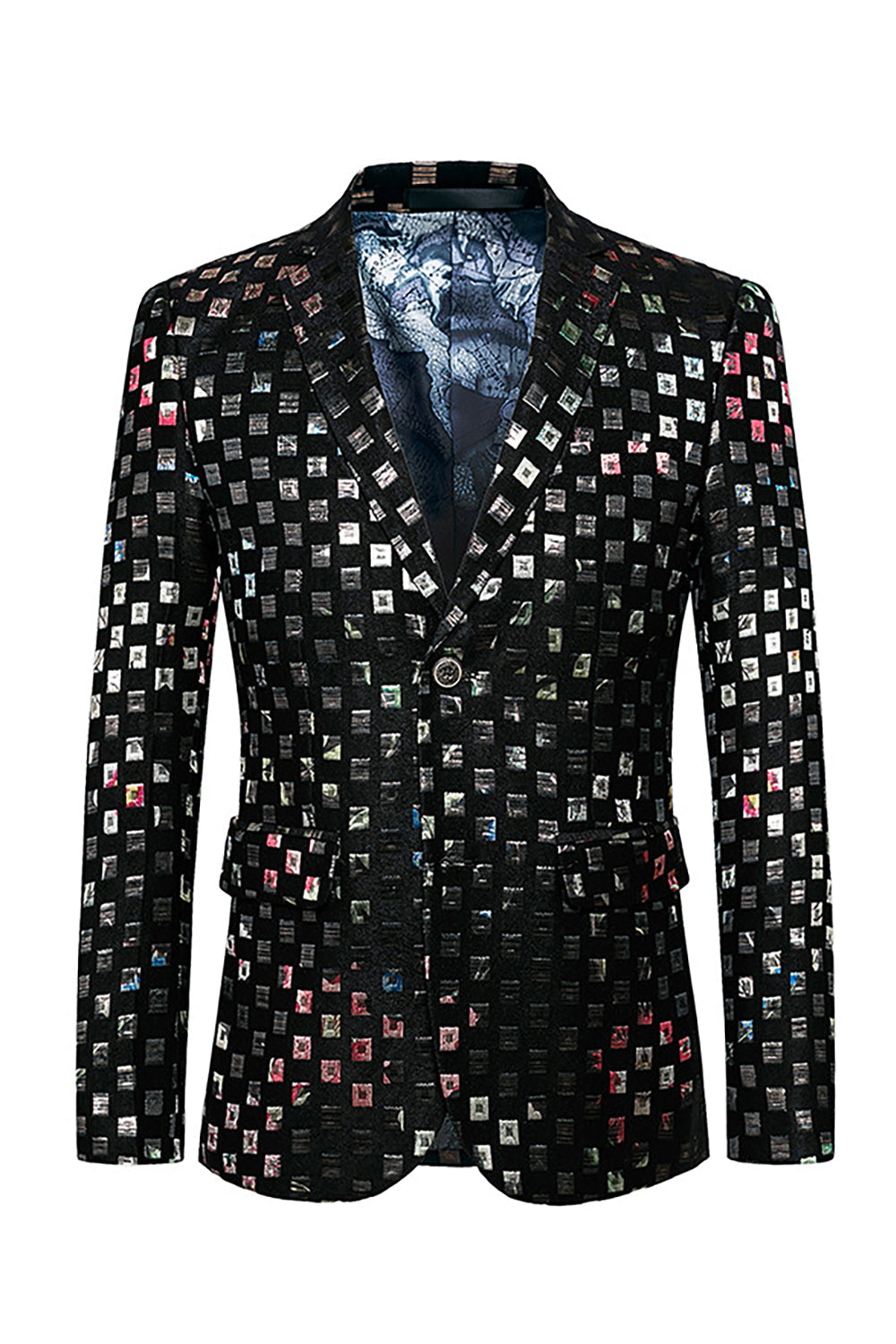 Sparkly Plaid Notched Lapel One Button Men's Blazer
