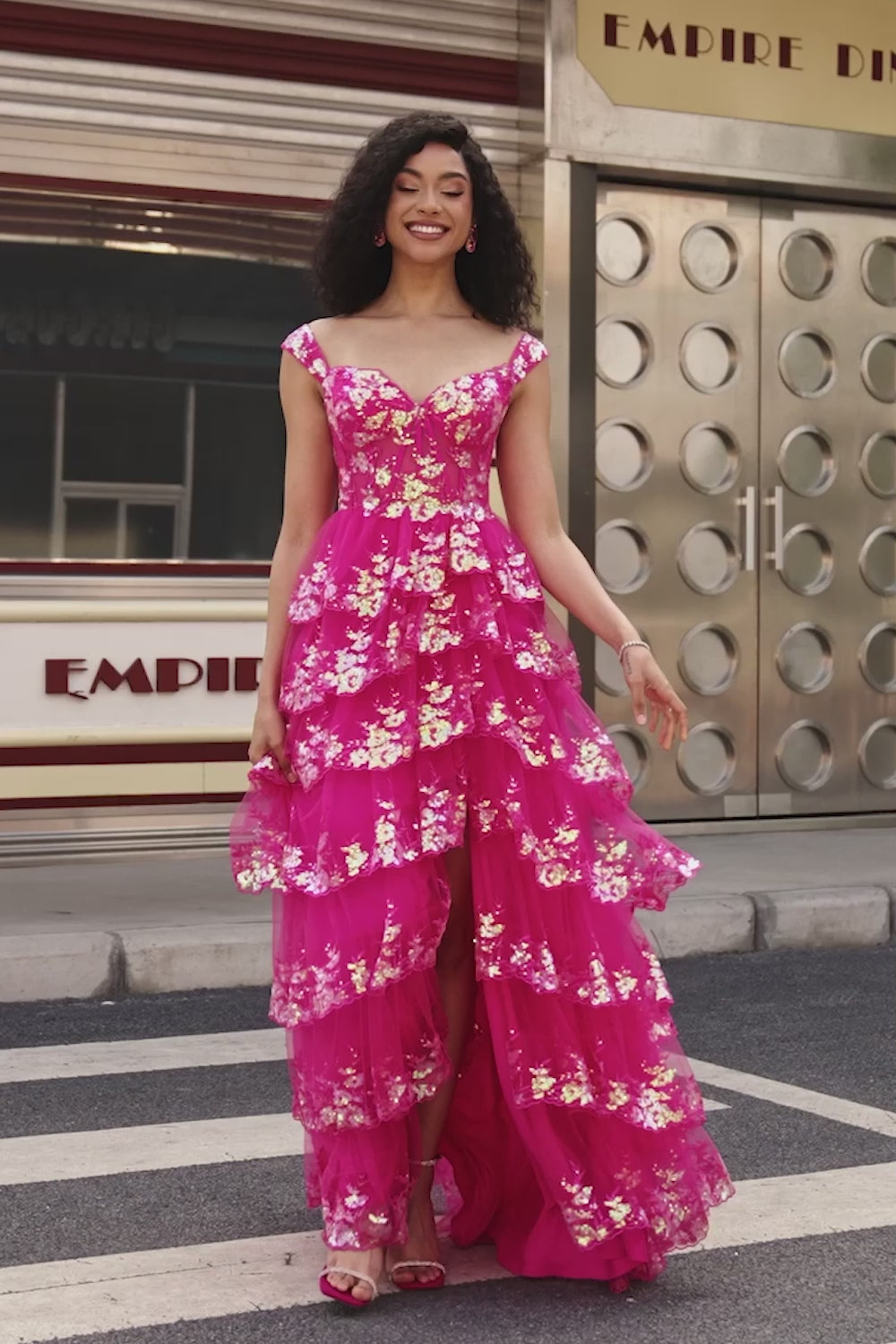 Trendy A Line Off the Shoulder Fuchsia Corset Prom Dress with Split Front