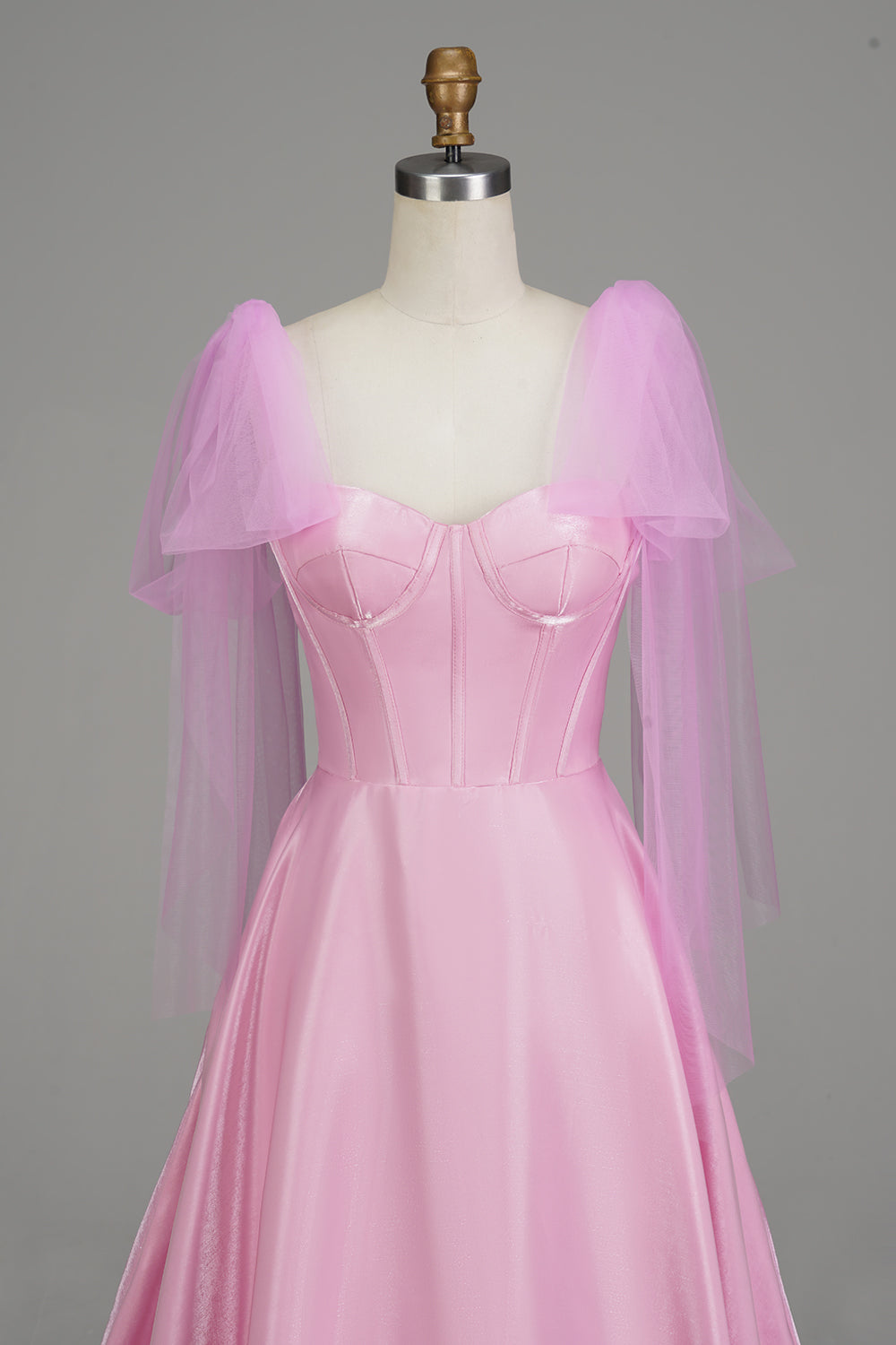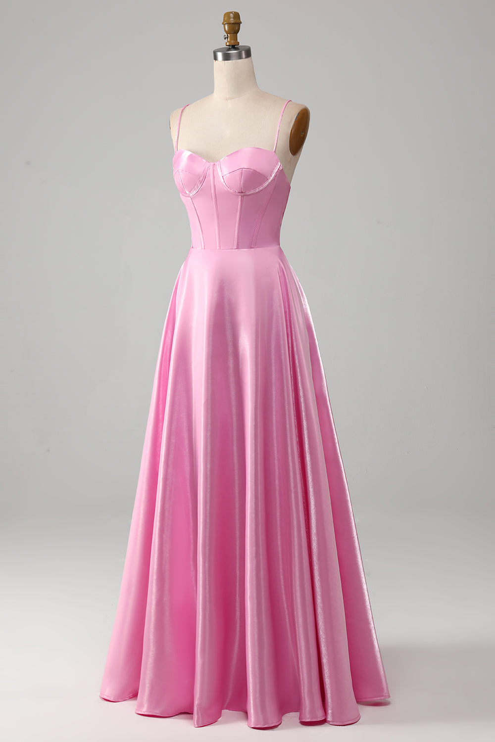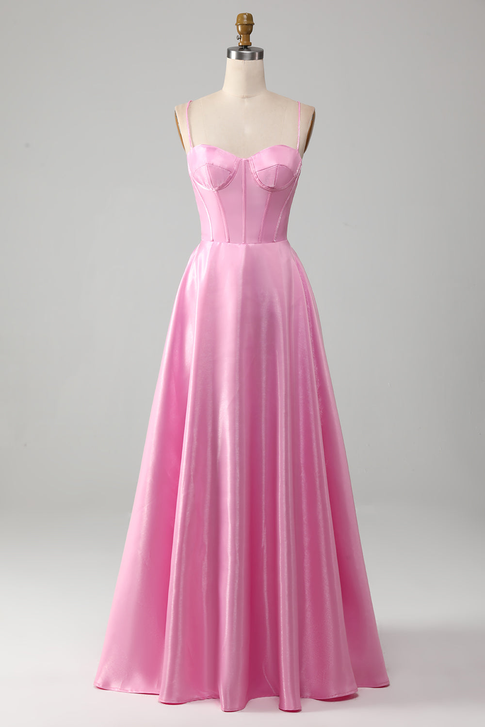A-Line Spaghetti Straps Pink Corset Prom Dress