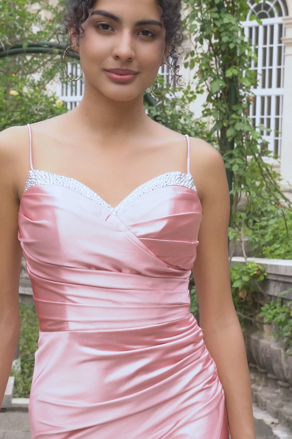 Blush Mermaid Spaghetti Straps Satin Long Prom Dress with Slit