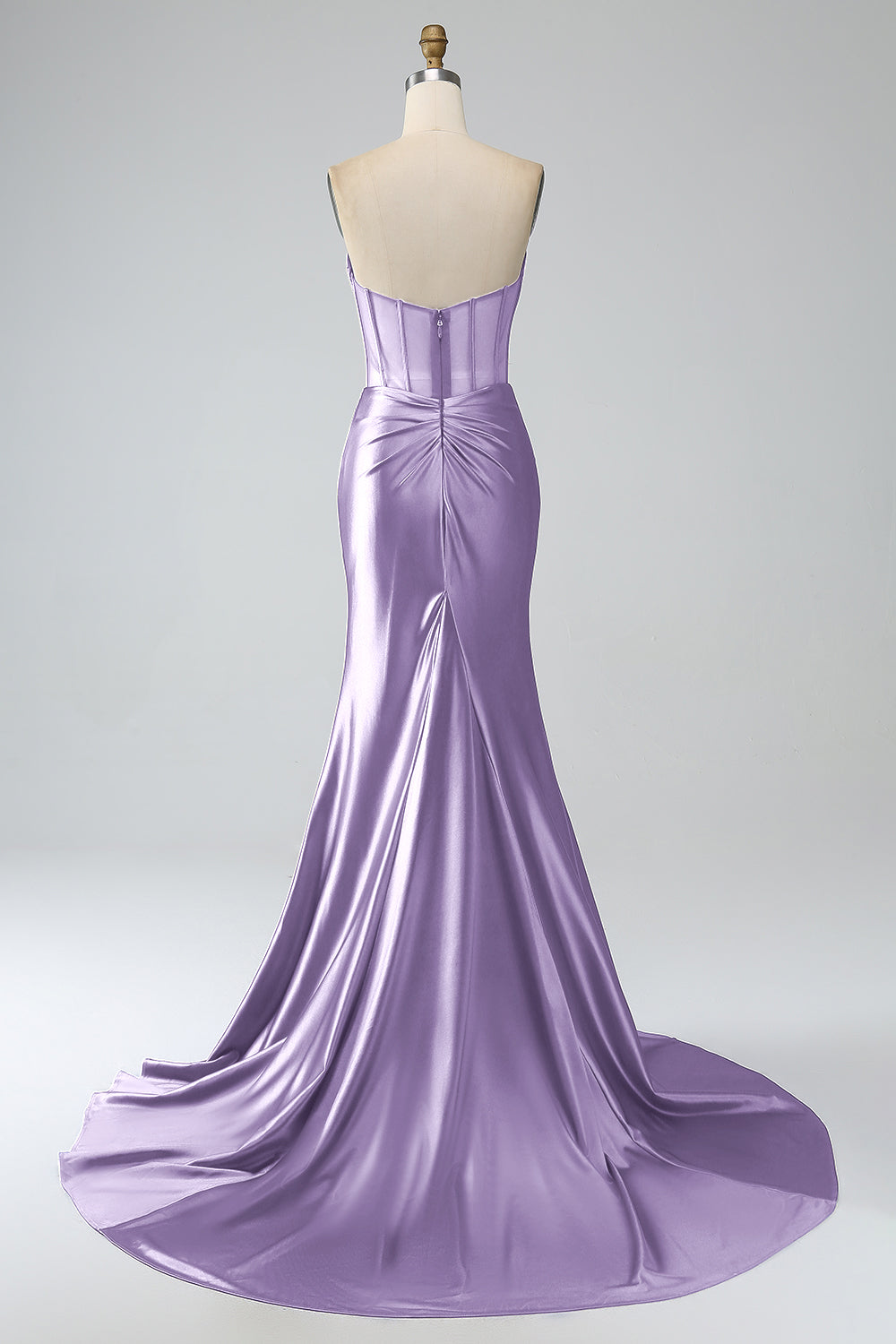 Royal Blue Mermaid Strapless Corset Long Prom Dress with Slit