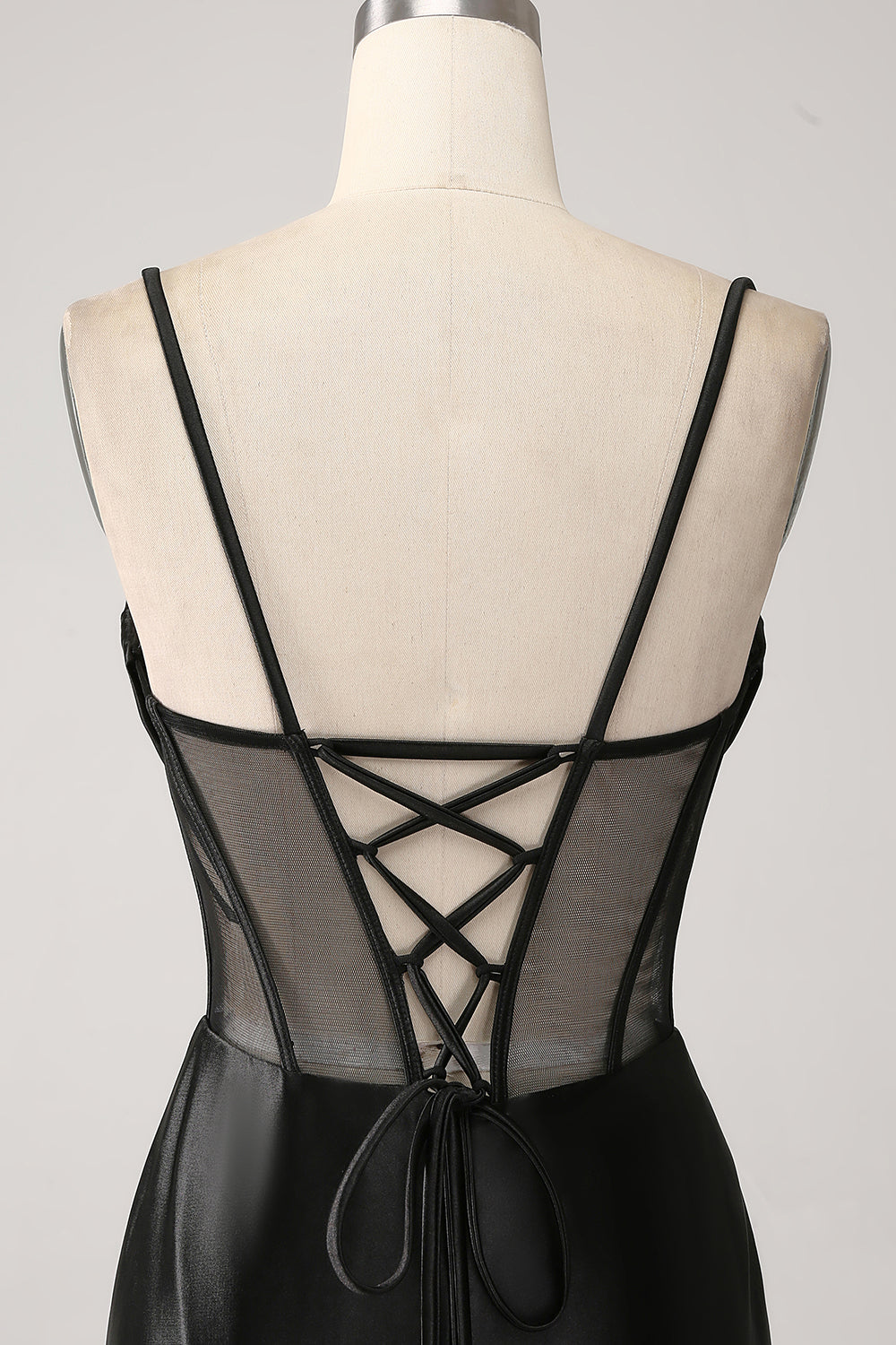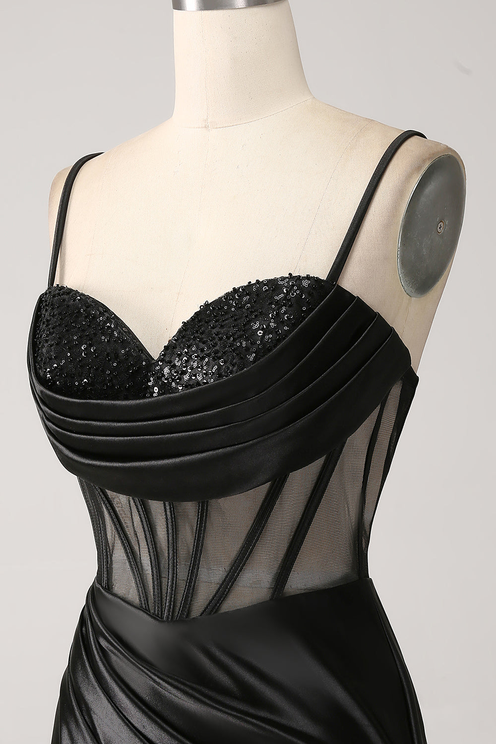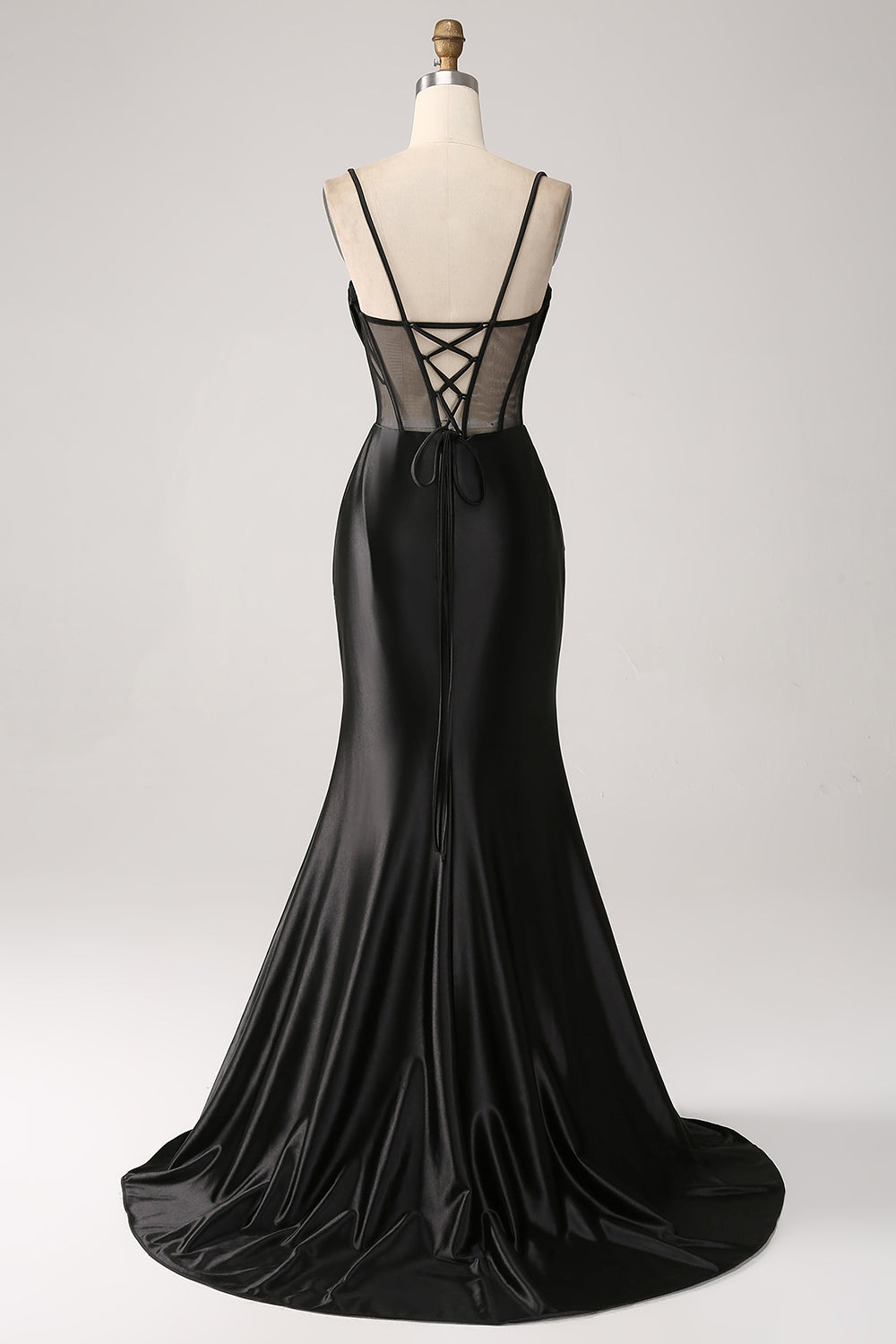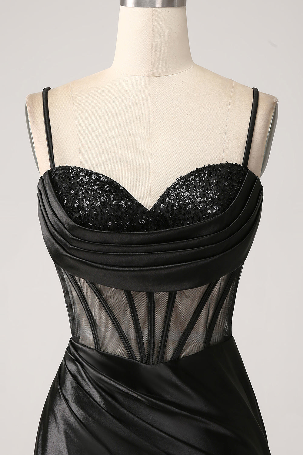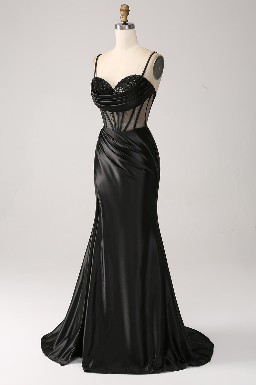 Mermaid Sweetheart Black Satin Long Prom Dress With Beading