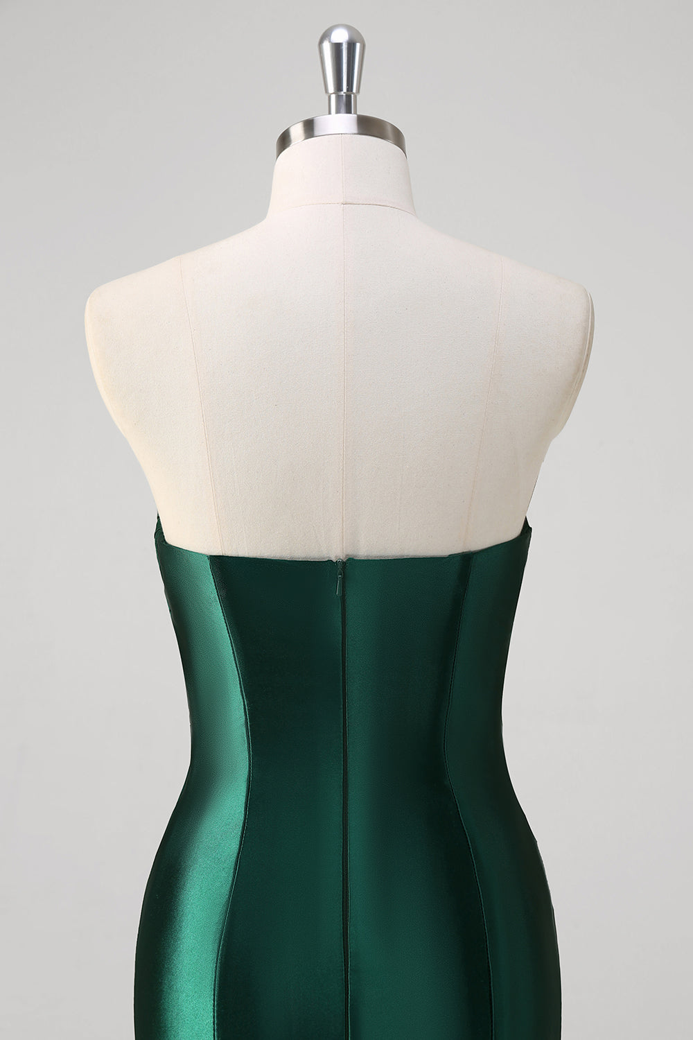 Red Mermaid Satin Strapless Pleated Sequin Long Prom Dress with Slit