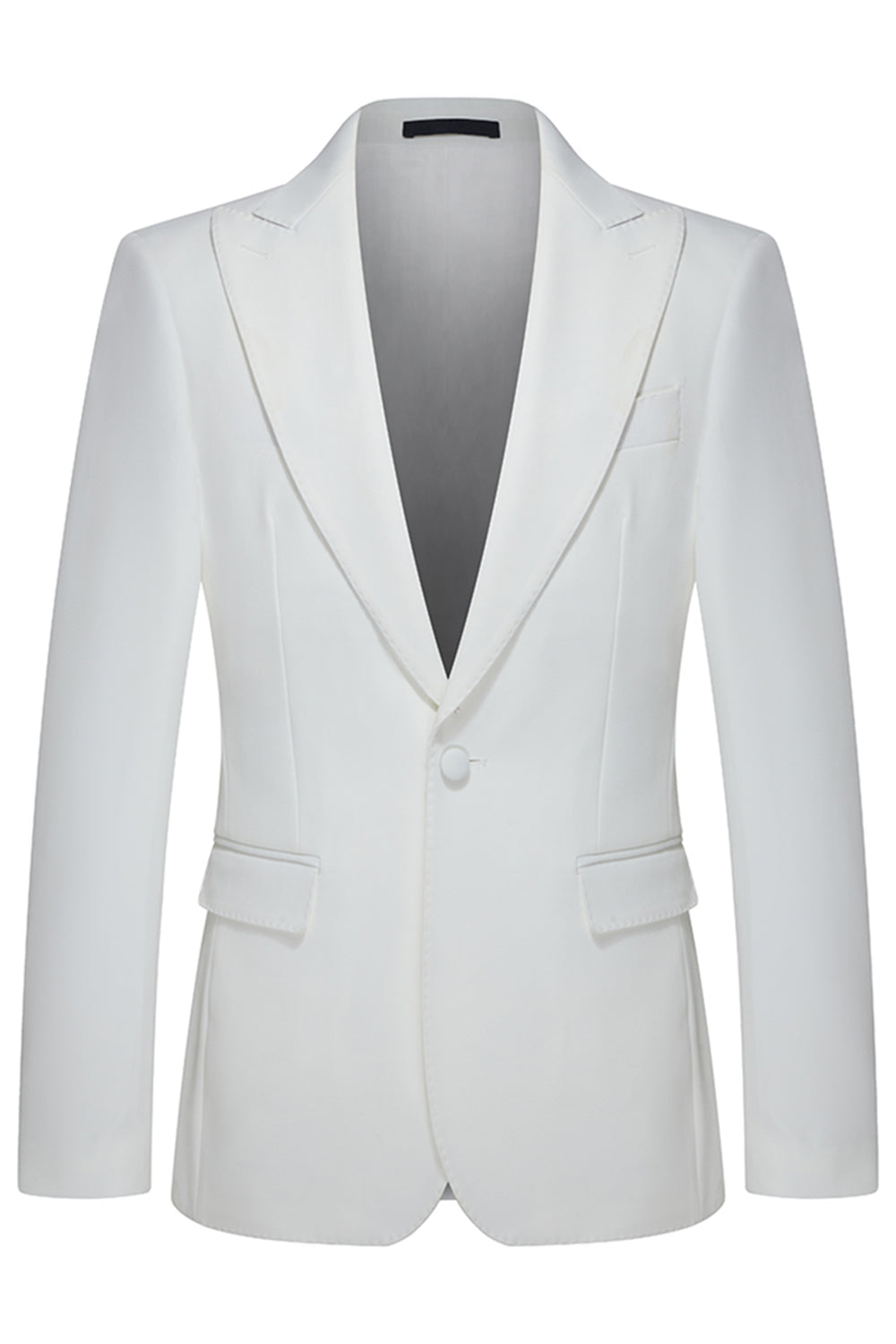 Peak Lapel 3 Piece One Button White Men's Wedding Suits