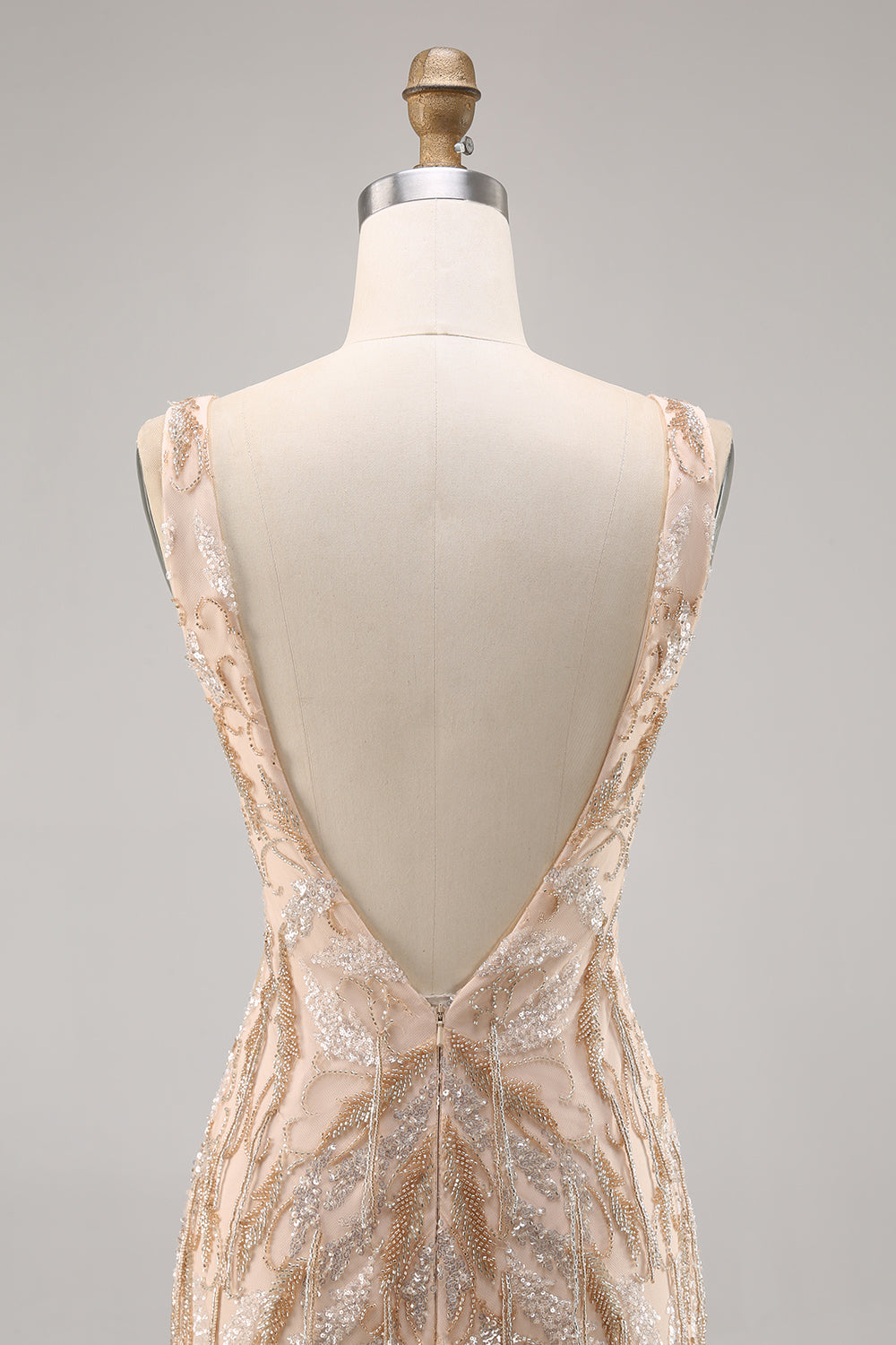 Beaded Champagne Bodycon Graduation Dress with Sequins