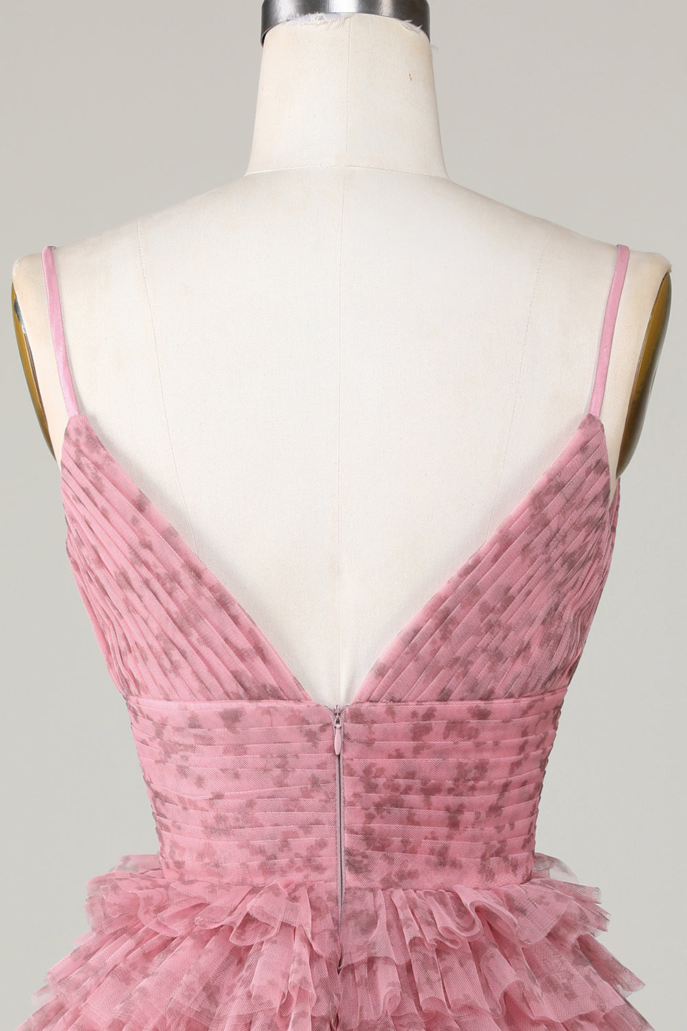 Cute A Line Spaghetti Straps Blush Homecoming Dress with Ruffles