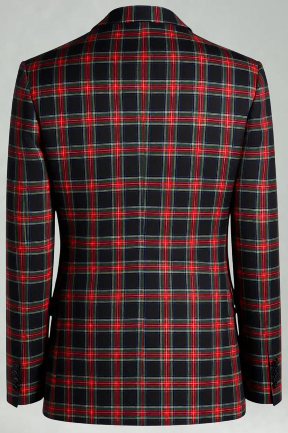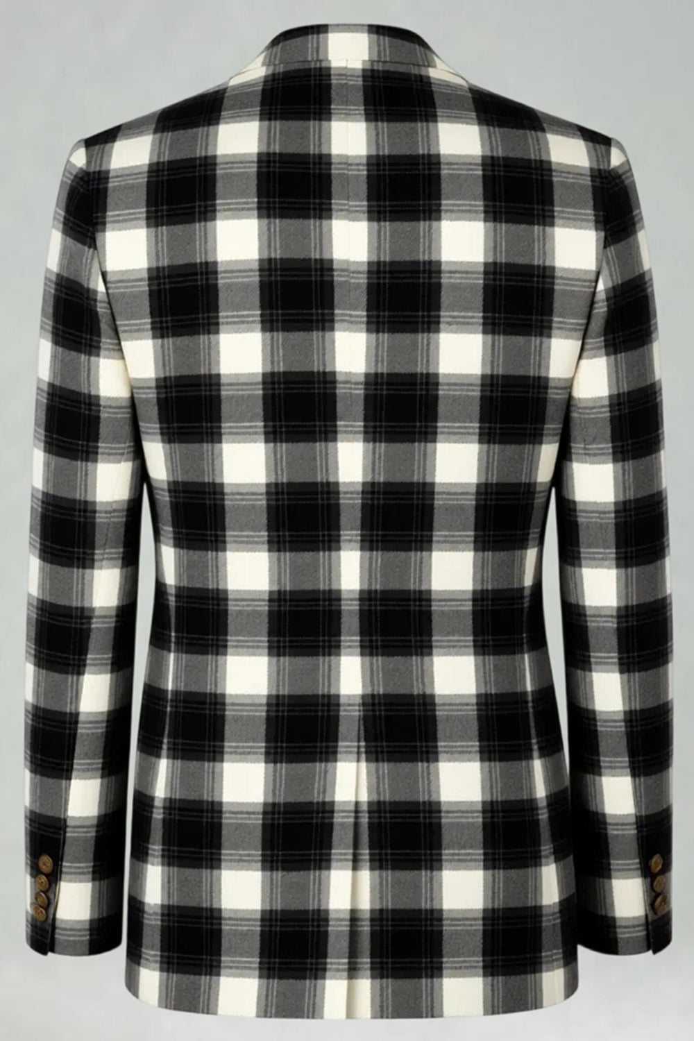 Black White Grid 2 Piece Notched Lapel Single Breasted Men's Prom Suits