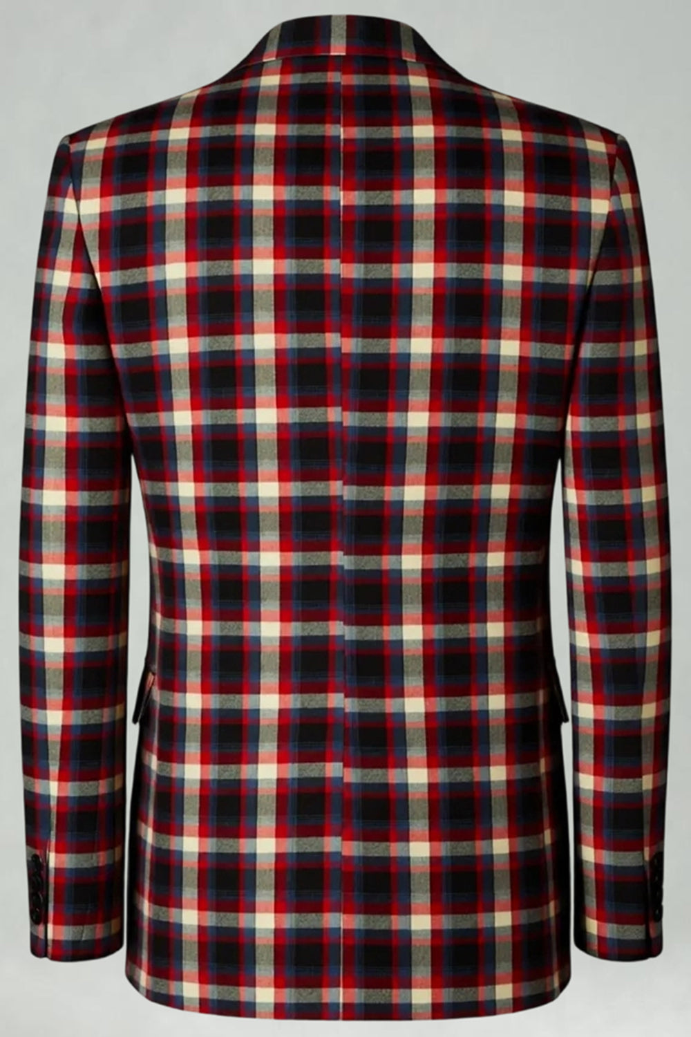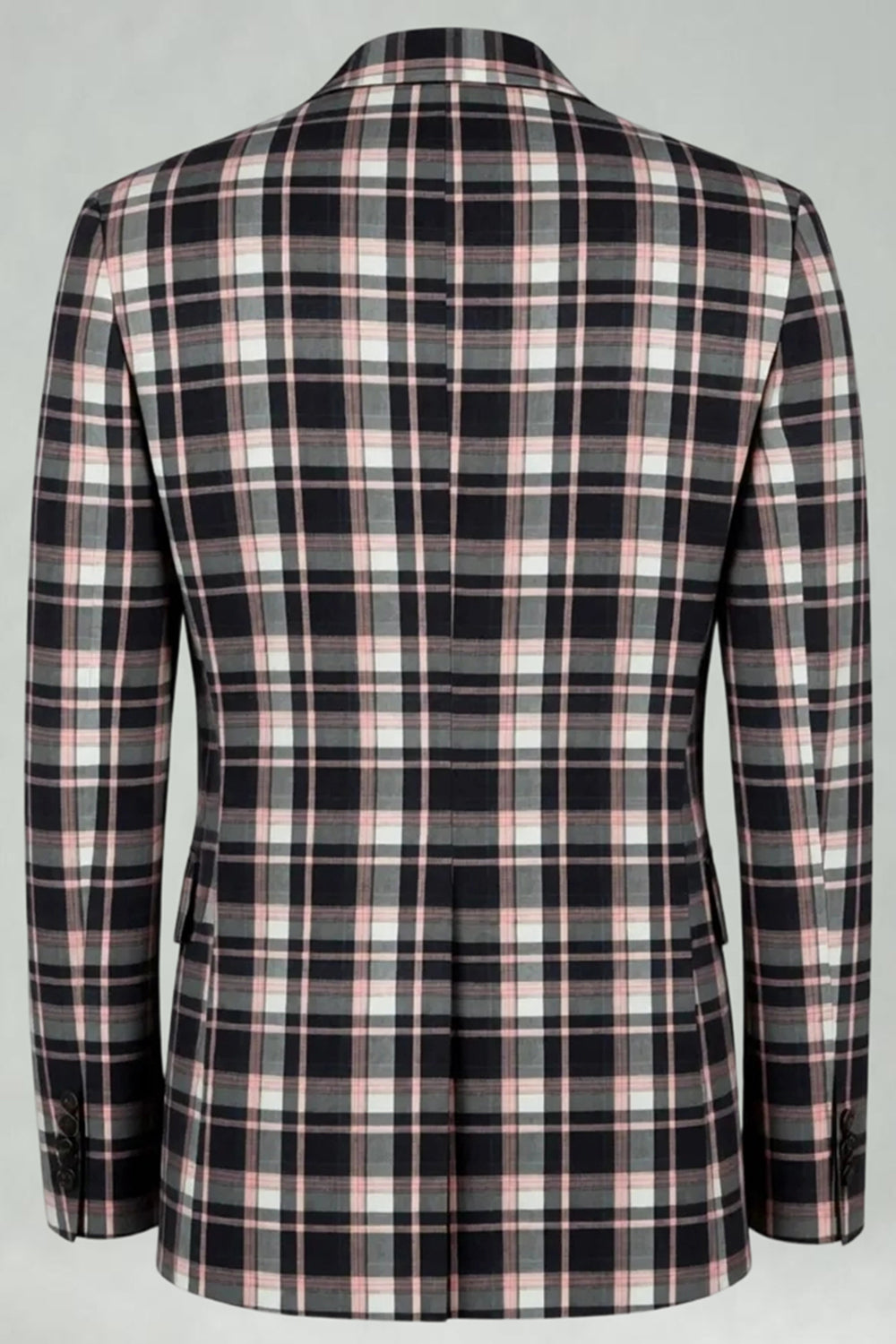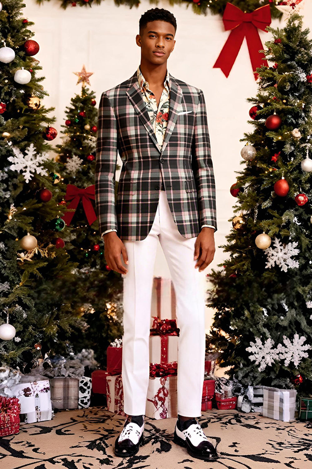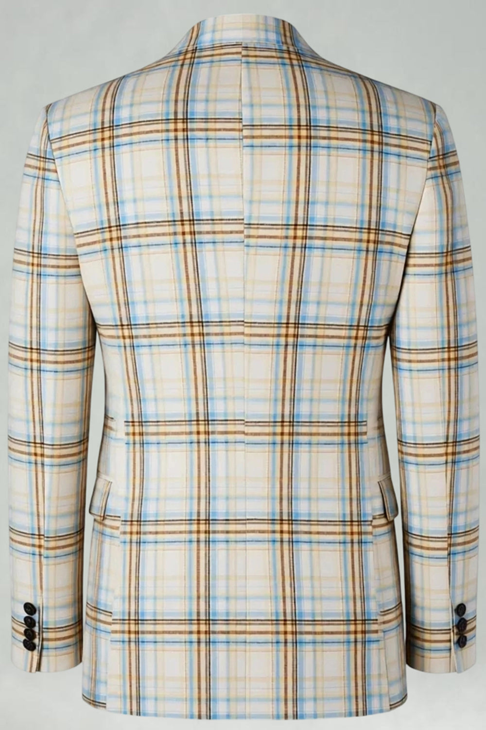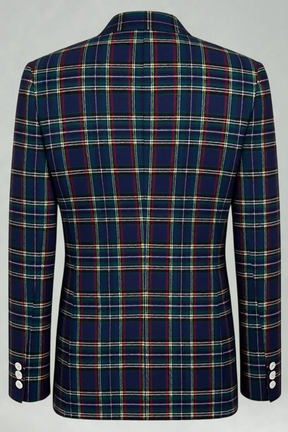 Blue Green Grid Notched Lapel 2 Piece Men's Prom Suits