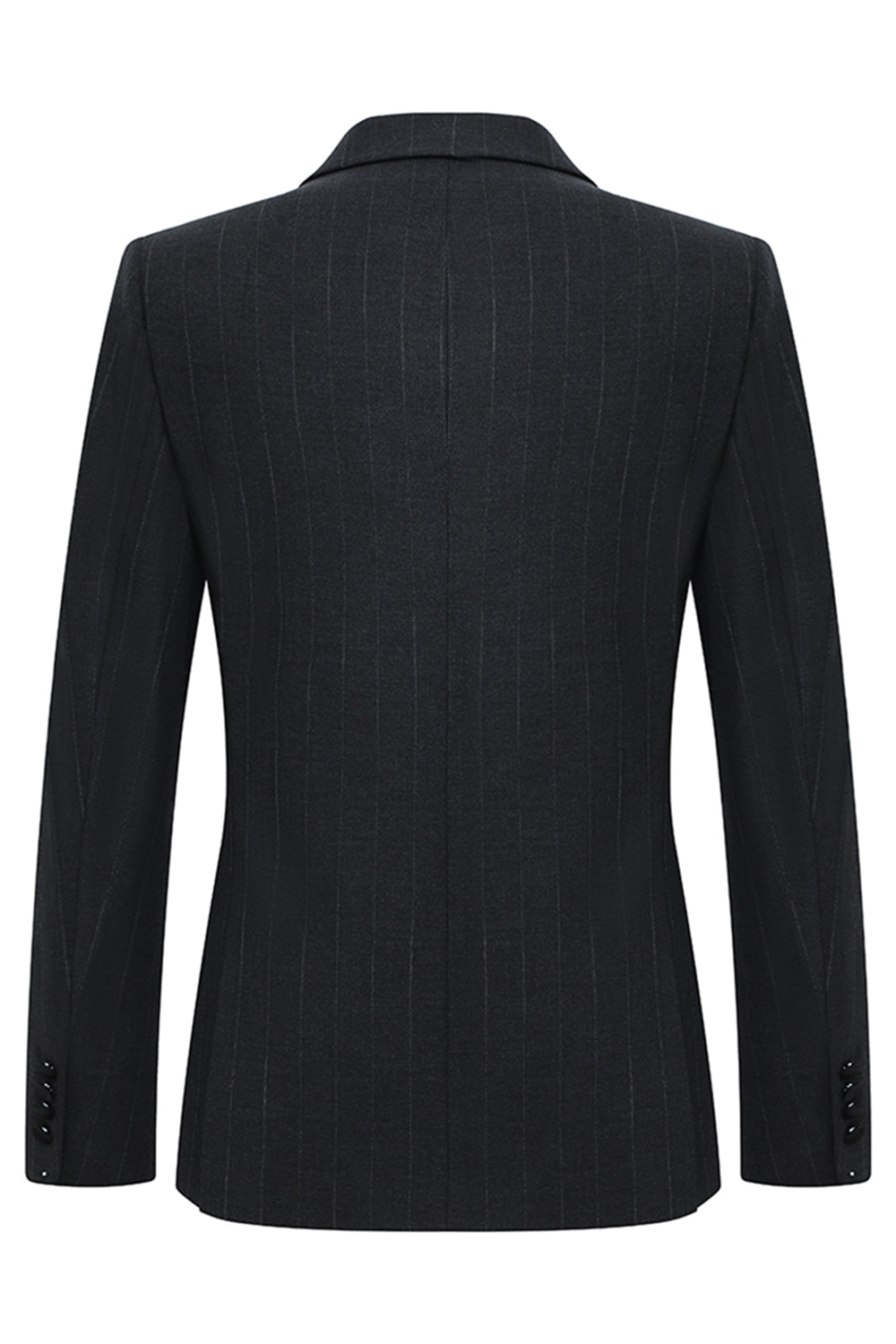 Dark Grey 2 Piece Peak Lapel Double Breasted Striped Men's Suits