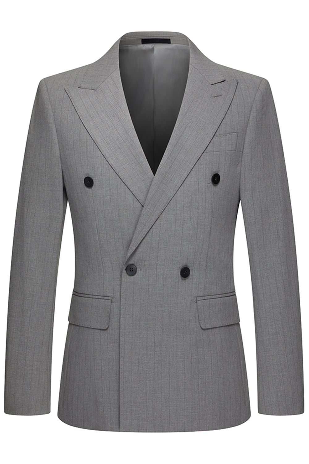 Grey Striped Peak Lapel 2 Piece Men's Suits