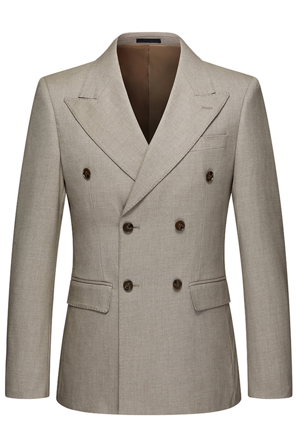 Men's Dark Khaki Peak Lapel 3 Piece Suits