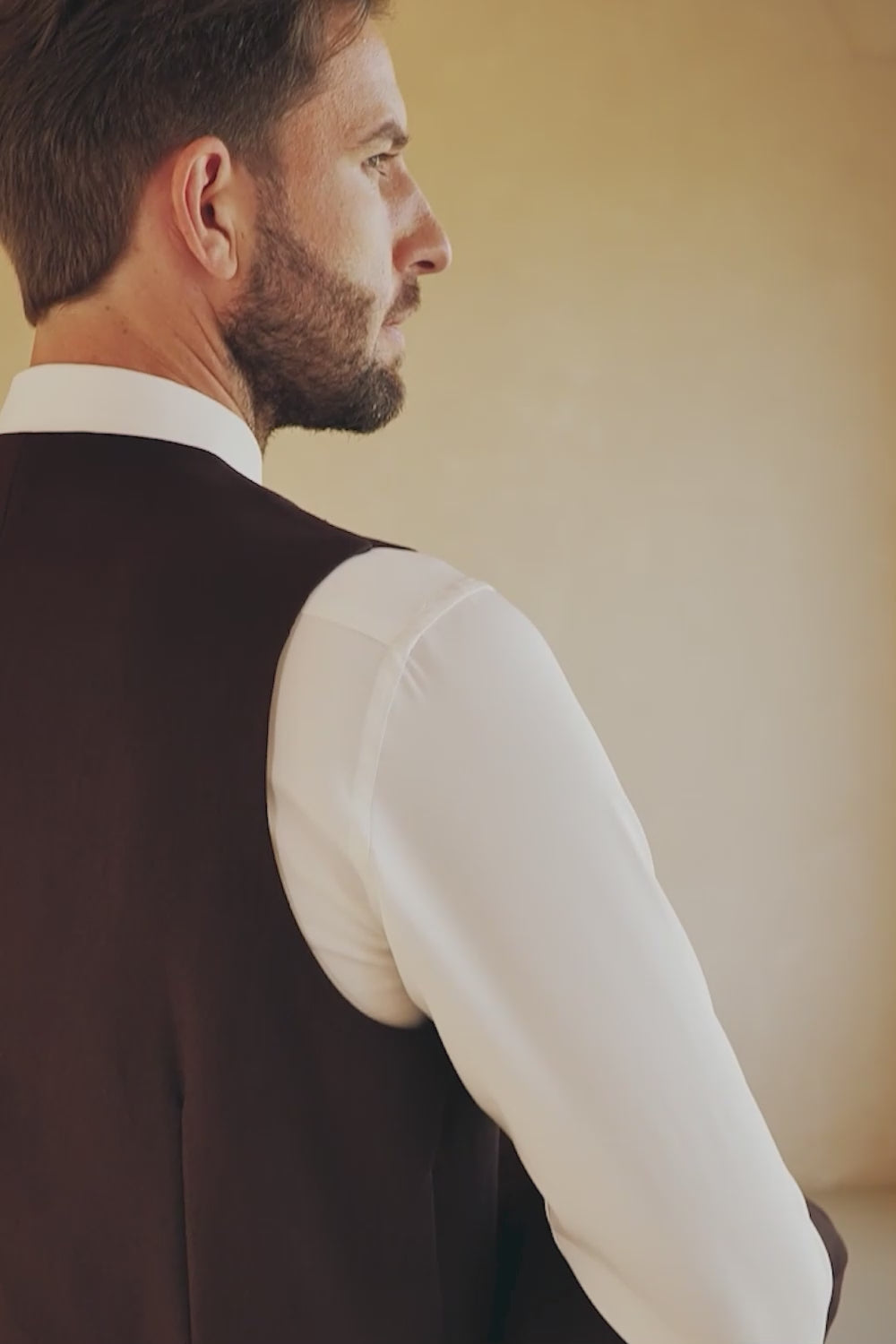Notched Lapel Two Button Dark Brown 3 Piece Suit Wedding