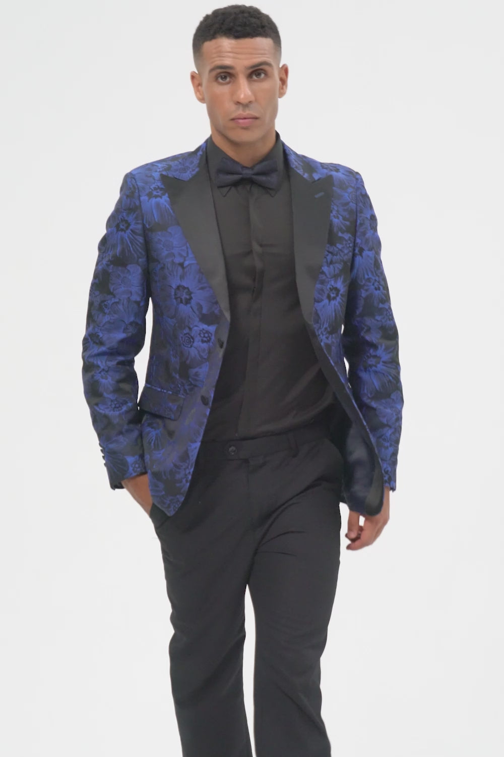 Royal Blue Peak Lapel Jacquard 2 Pieces Men's Suits
