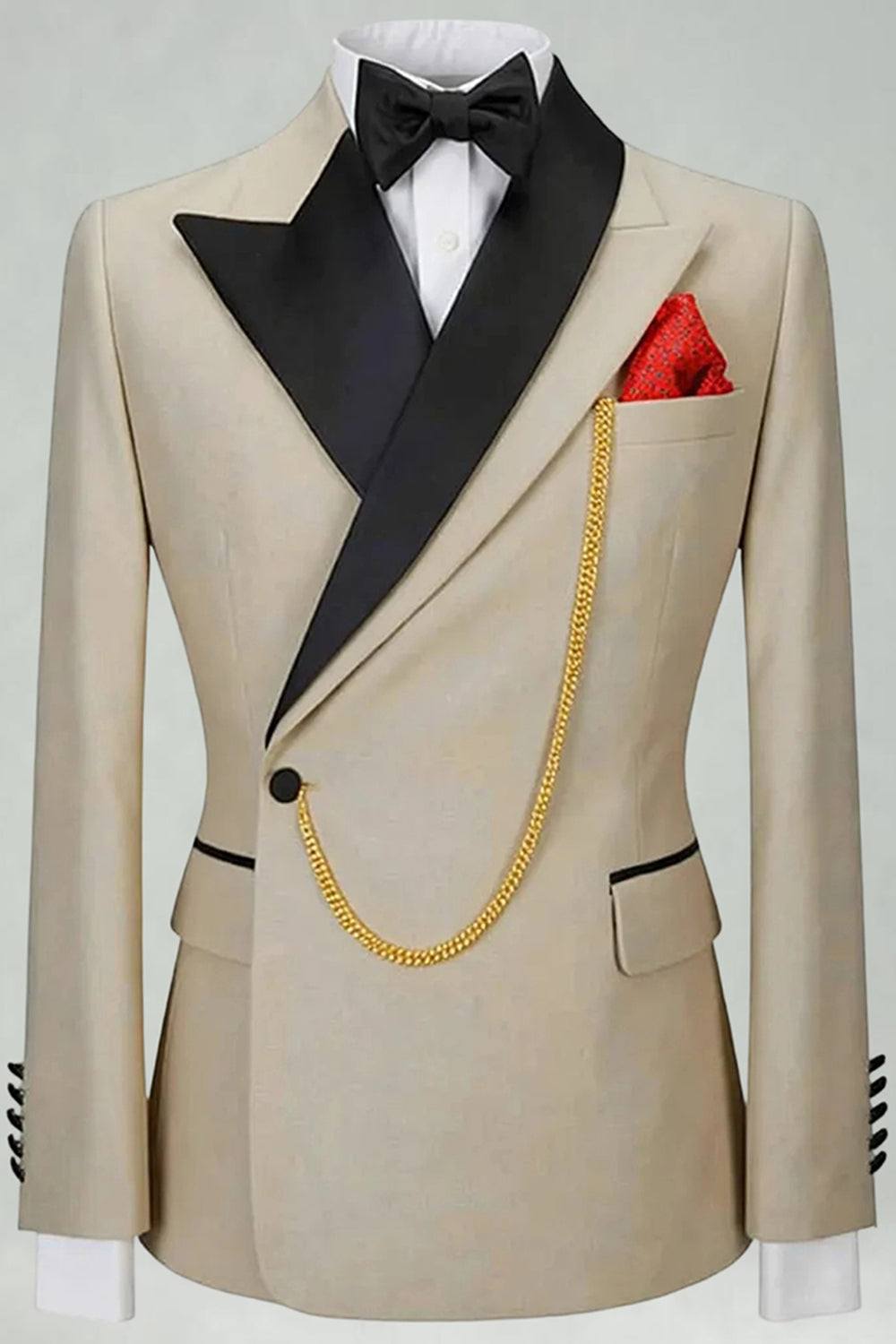 Slim Fit 2 Piece Khaki Peak Lapel Men's Suits