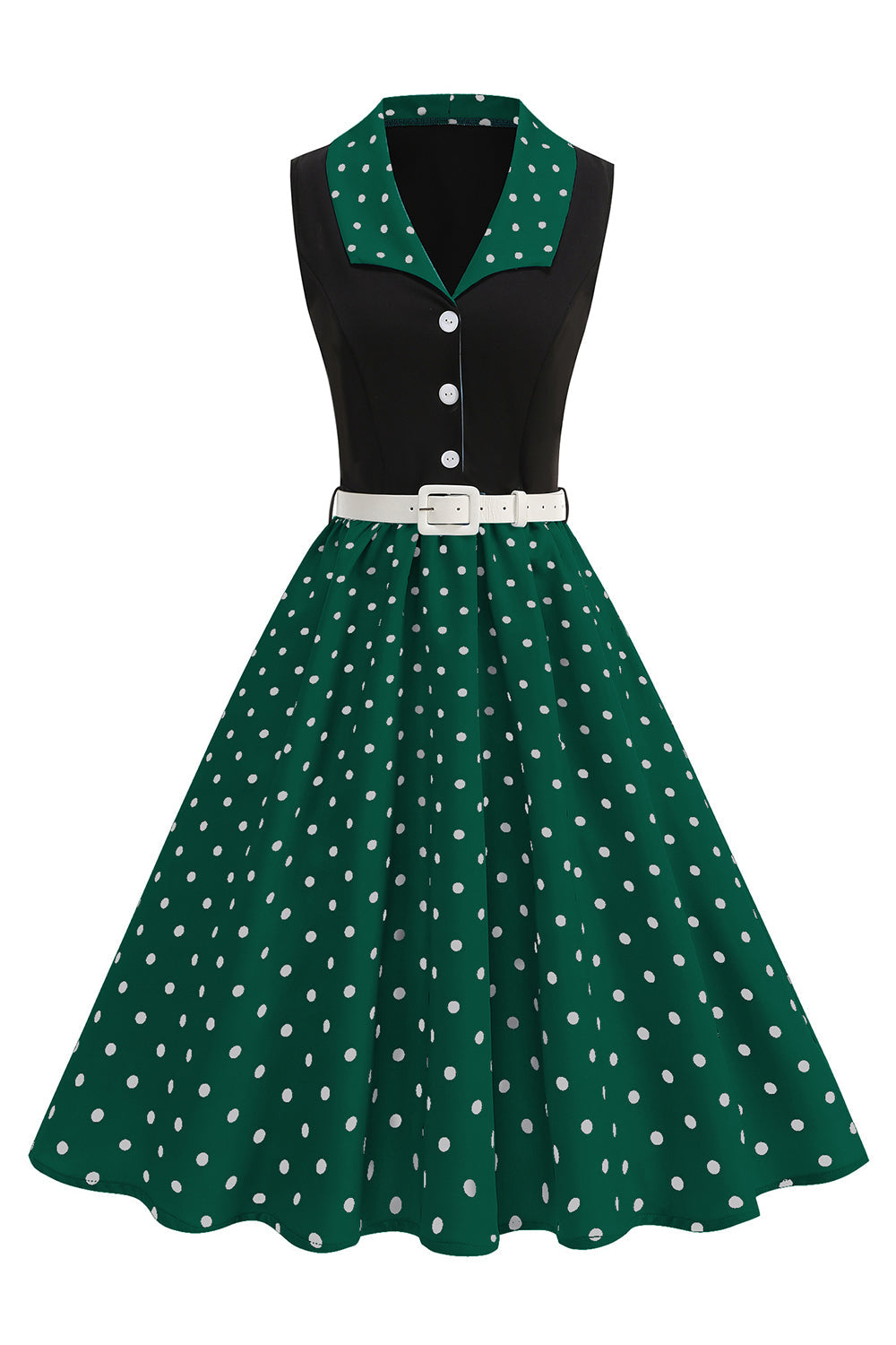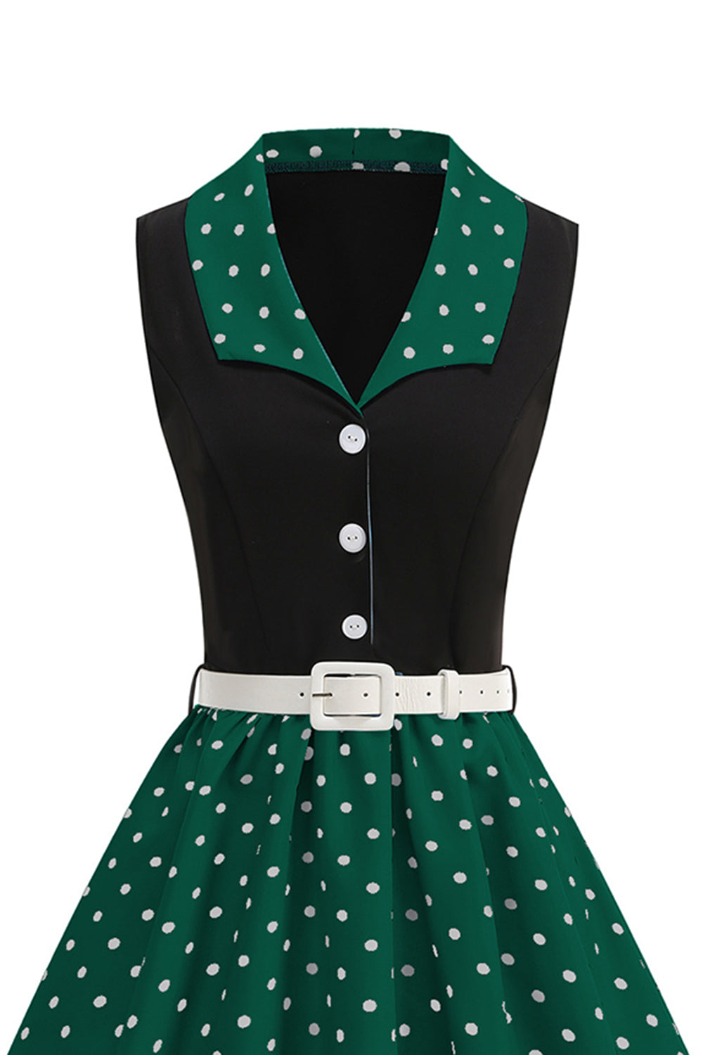 Blue A Line Polka Dots Shawl Lapel 1950s Dress