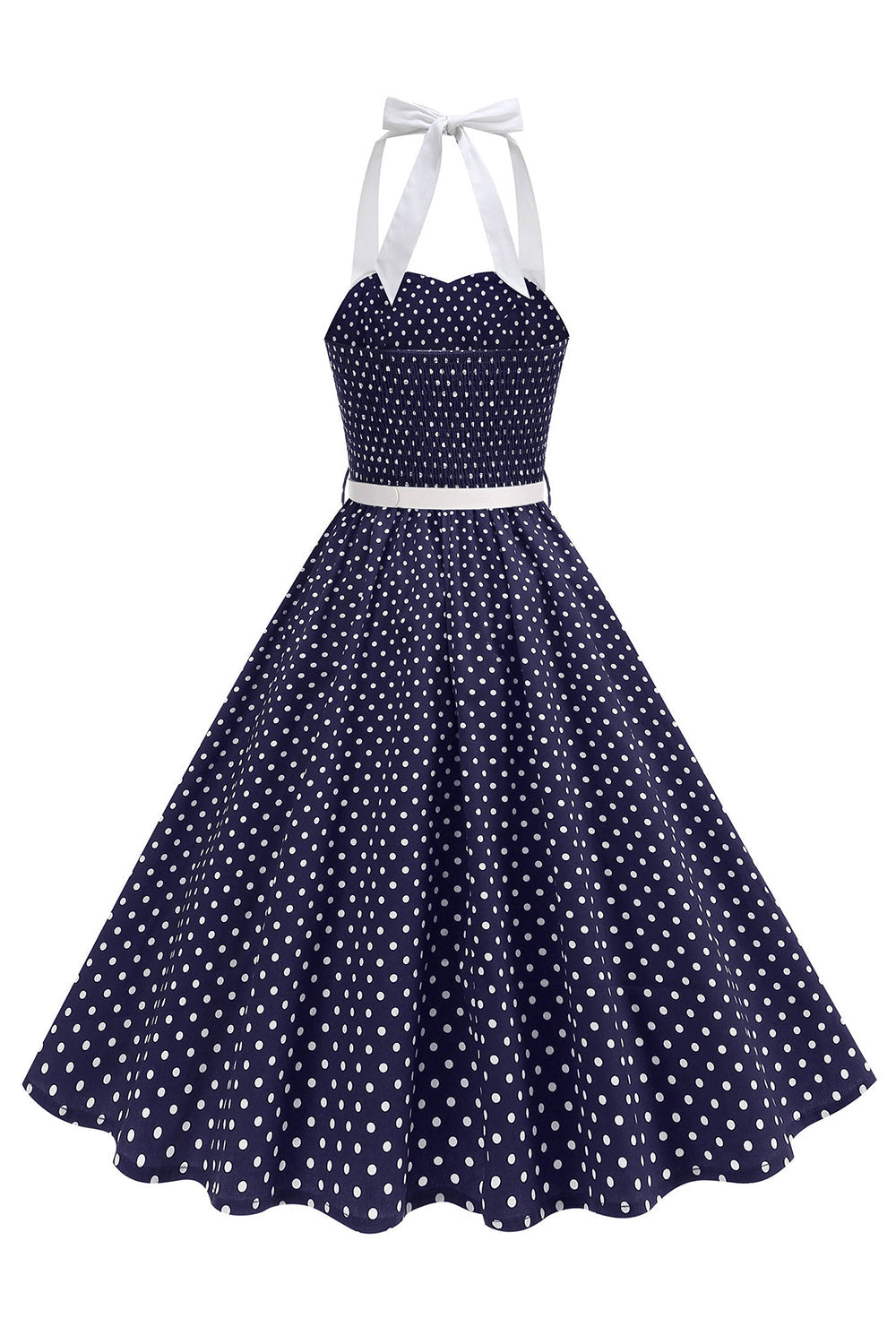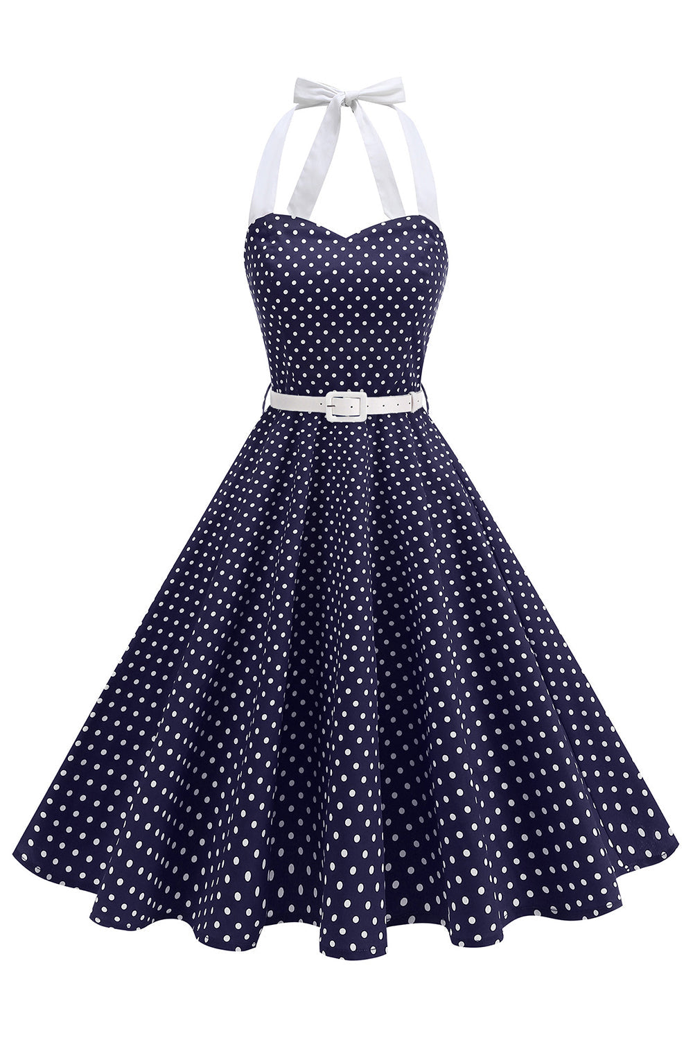 Halter Polka Dots Light Blue A Line 1950s Dress
