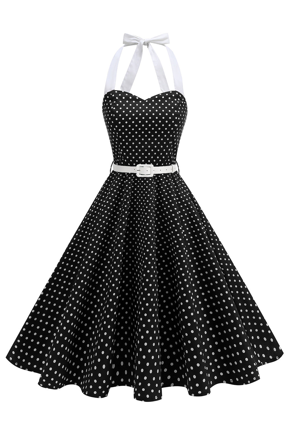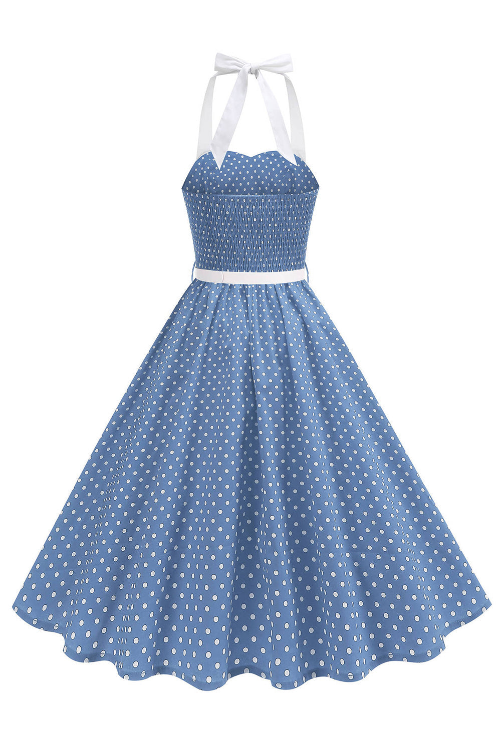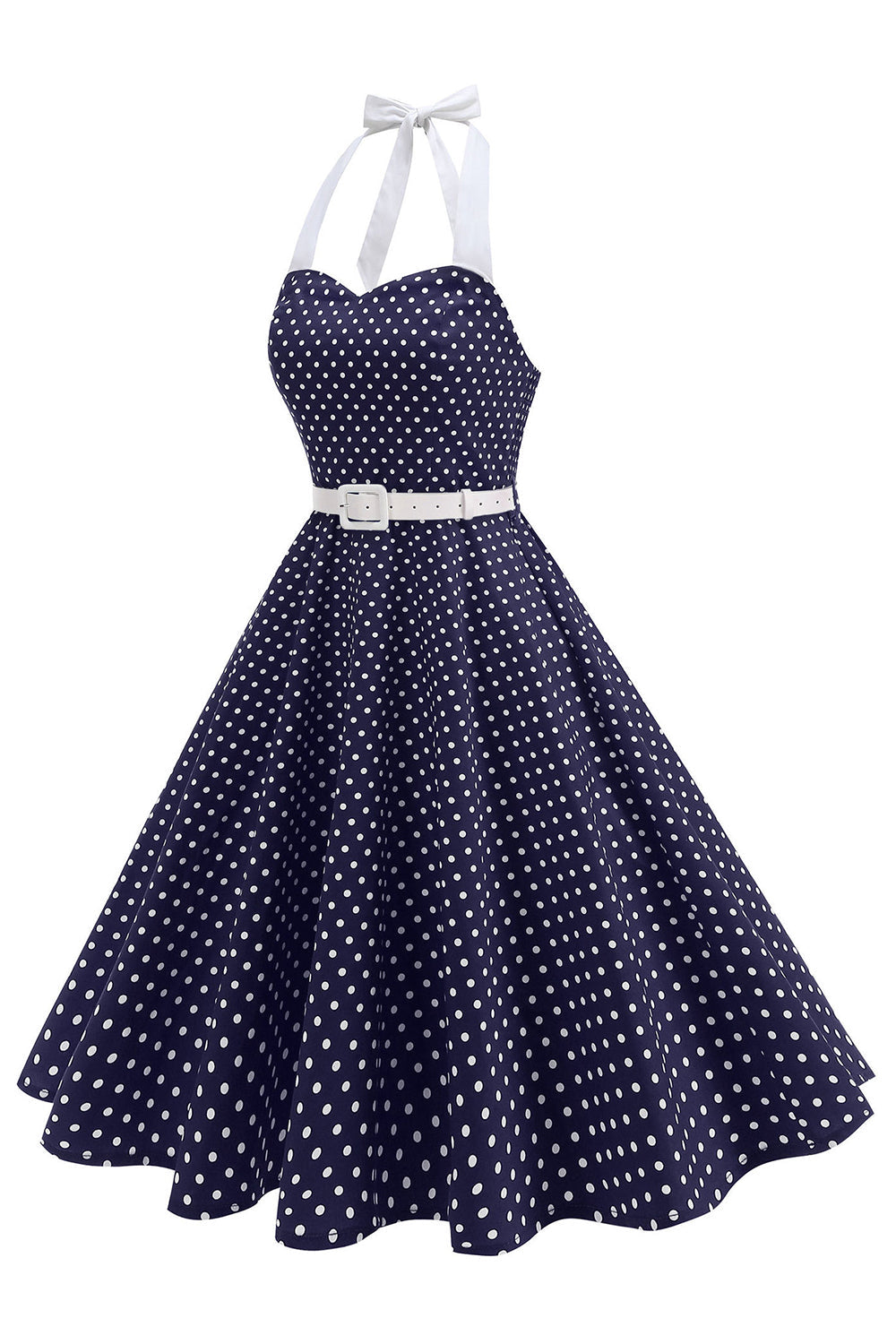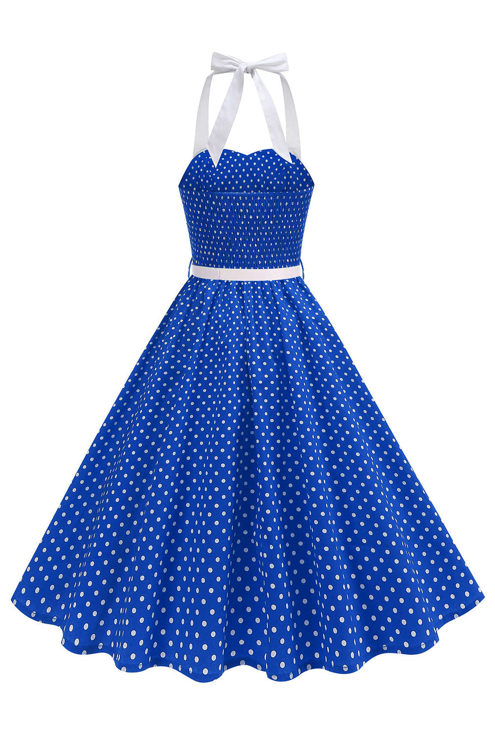 Halter Polka Dots Royal Blue A Line 1950s Dress