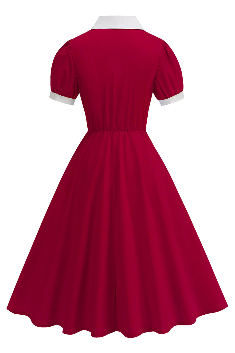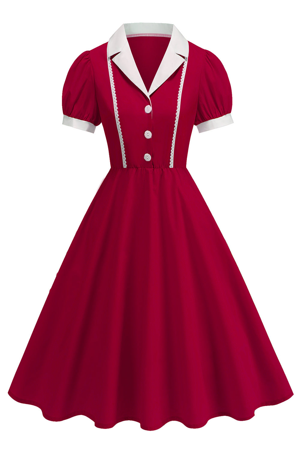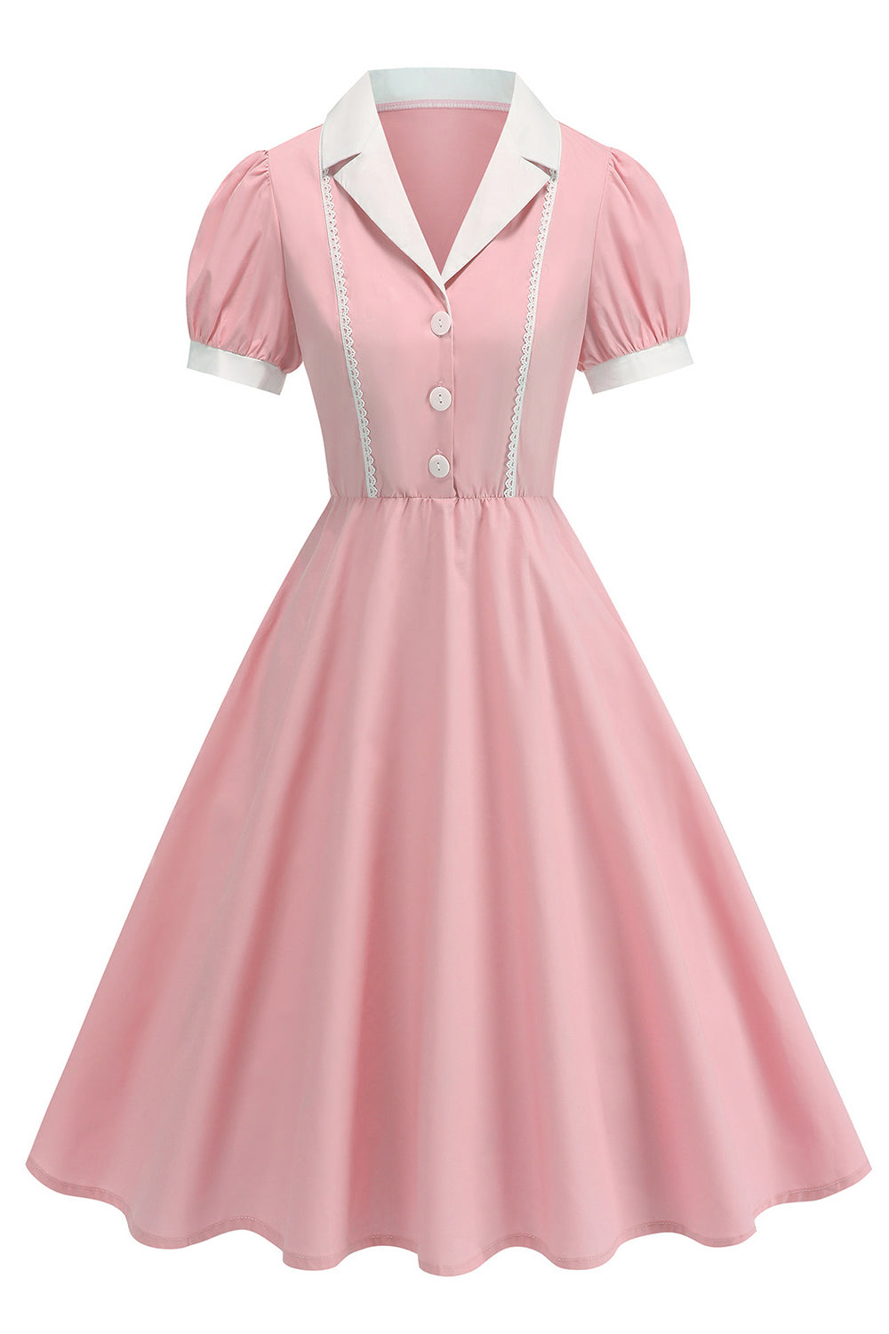Notched Lapel Blue A Line Single Breasted 1950s Dress