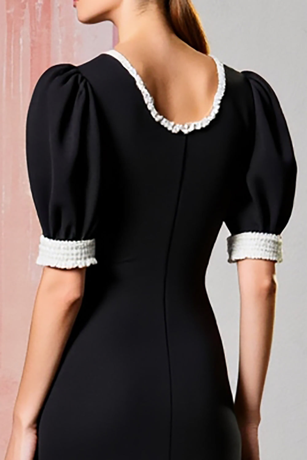 Black Round Neck Sheath Long Wedding Guest Dress with Short Sleeves
