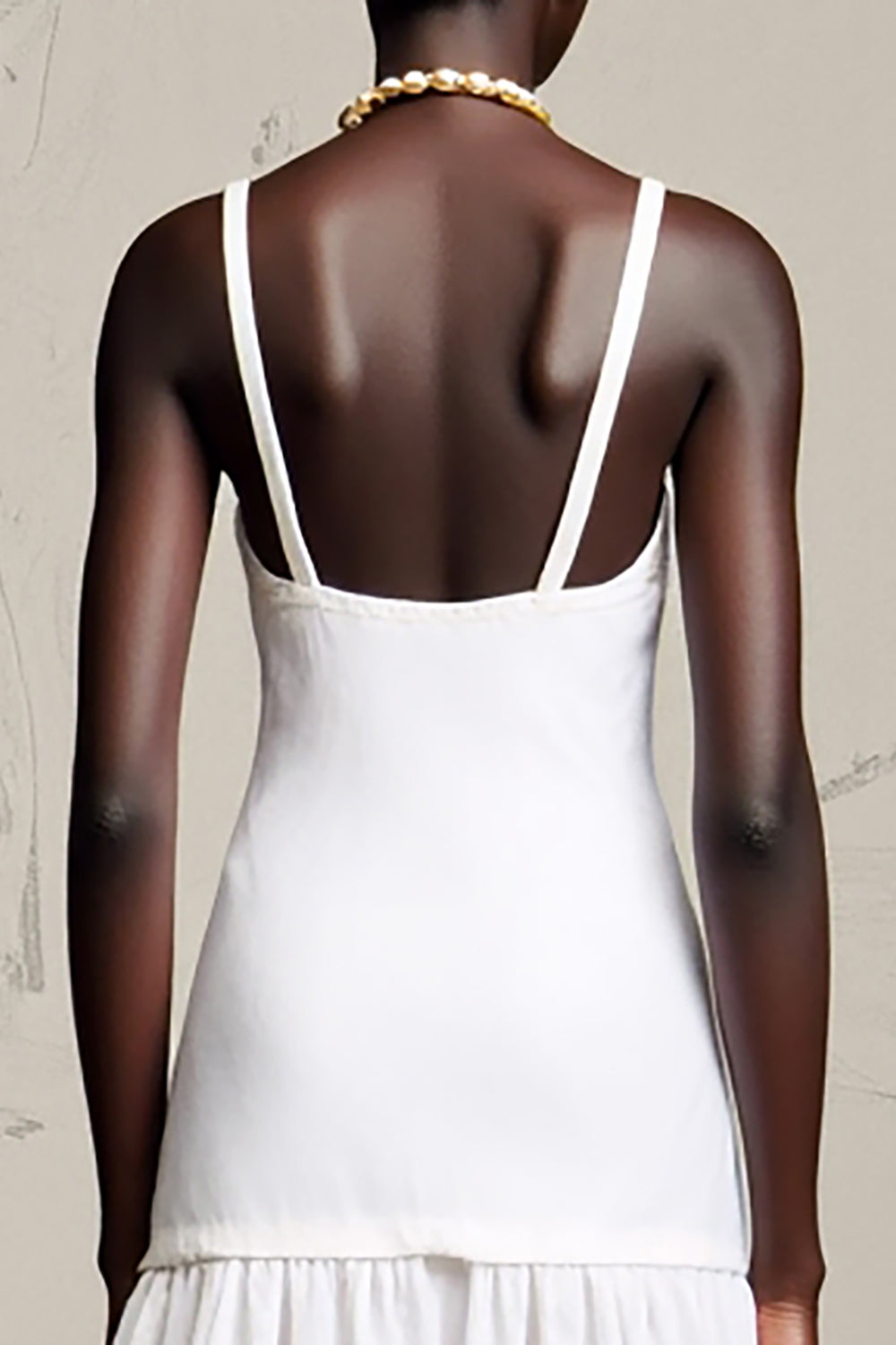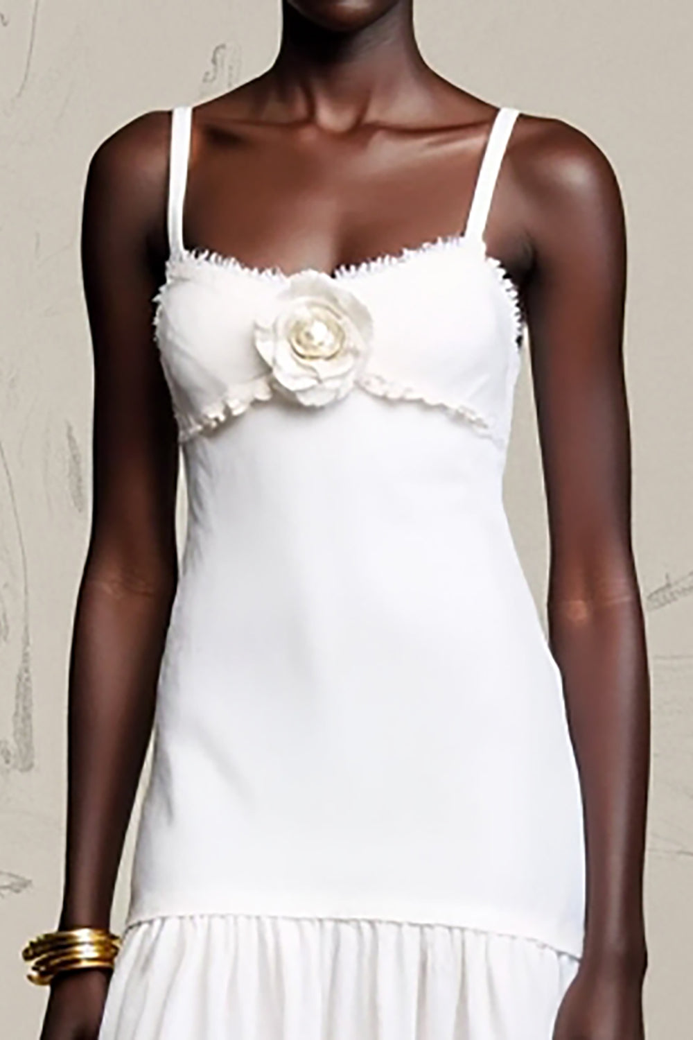 Whiet A Line Spaghetti Straps Wedding Guest Dress with Flowers