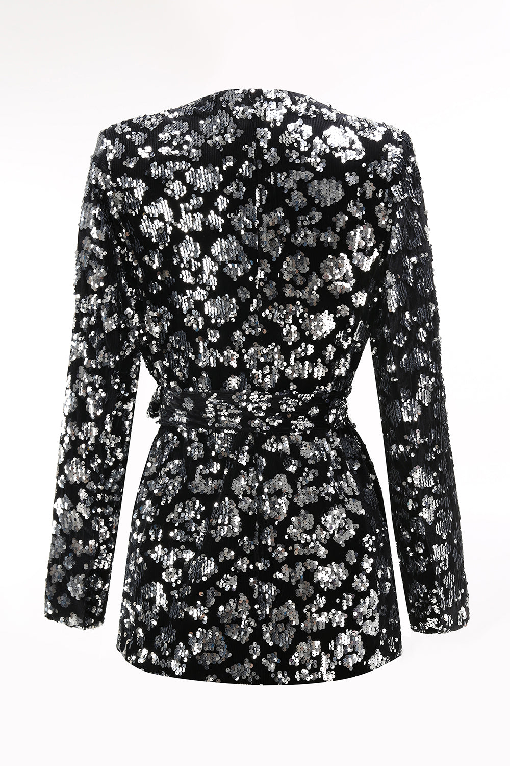 Sparkly Black Slim Fit 2 Piece Women's Prom Suit with Sash