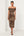 Brown Leopard Bodycon Satin Printed Midi Work Dress with Belt