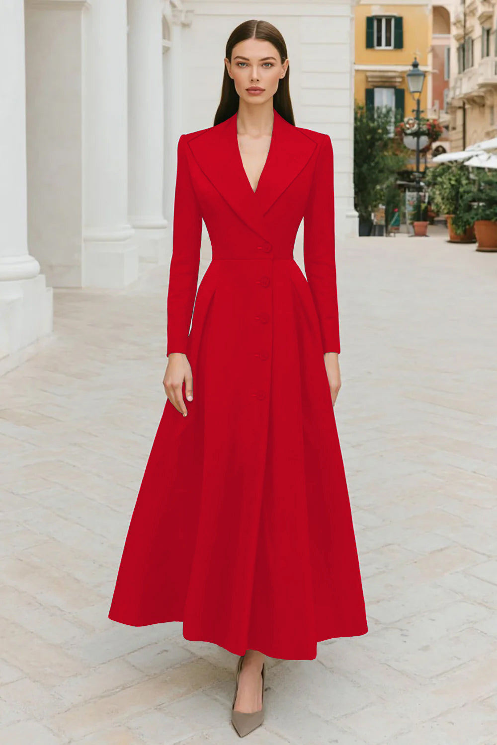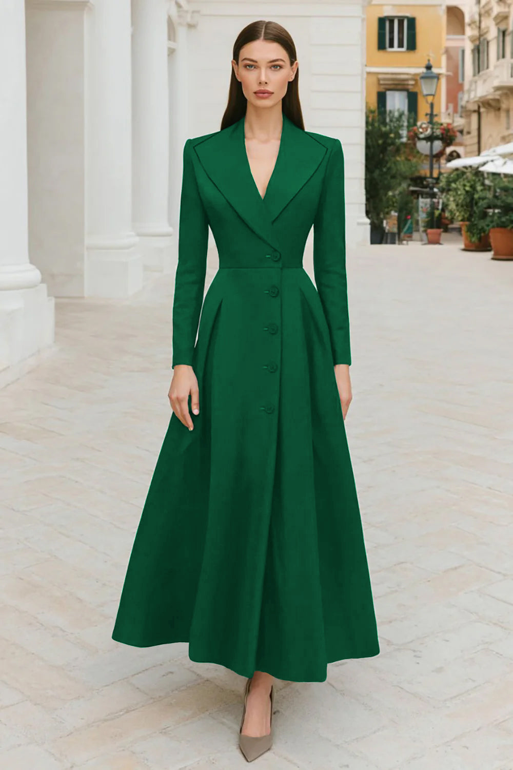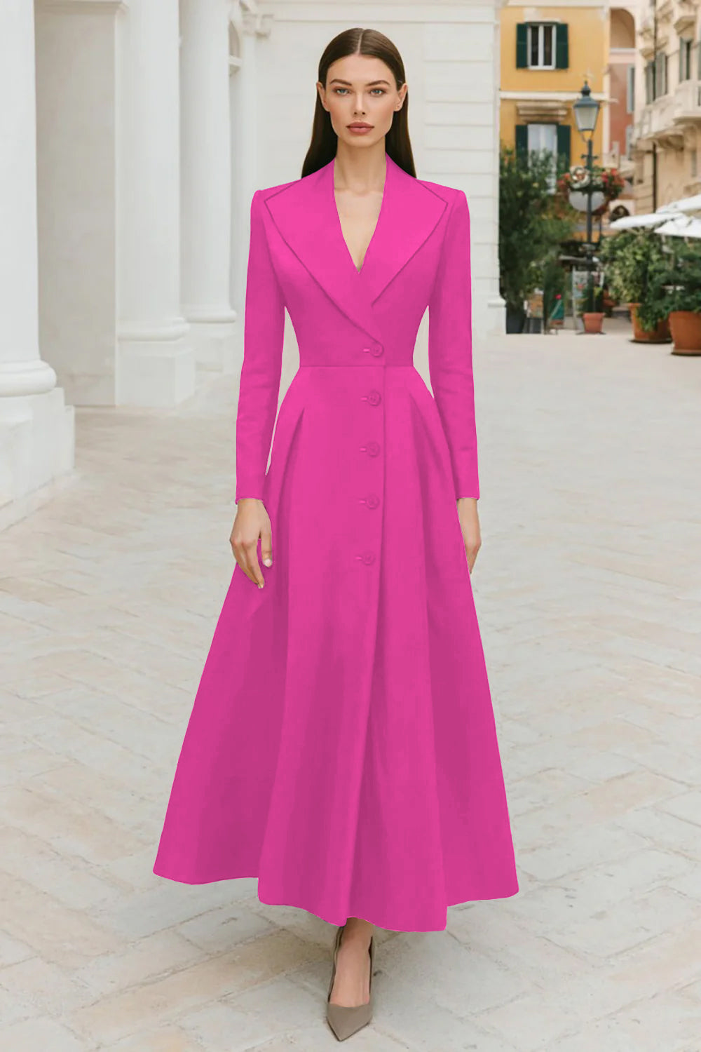 Navy Lapel Single-Breasted A Line Work Dress
