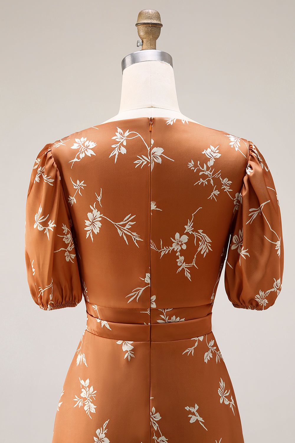 Orange Floral Printed A Line Midi Work Dress with Sleeves