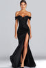 Black Off The Shoulder Satin Mermaid Gala Dress with Slit