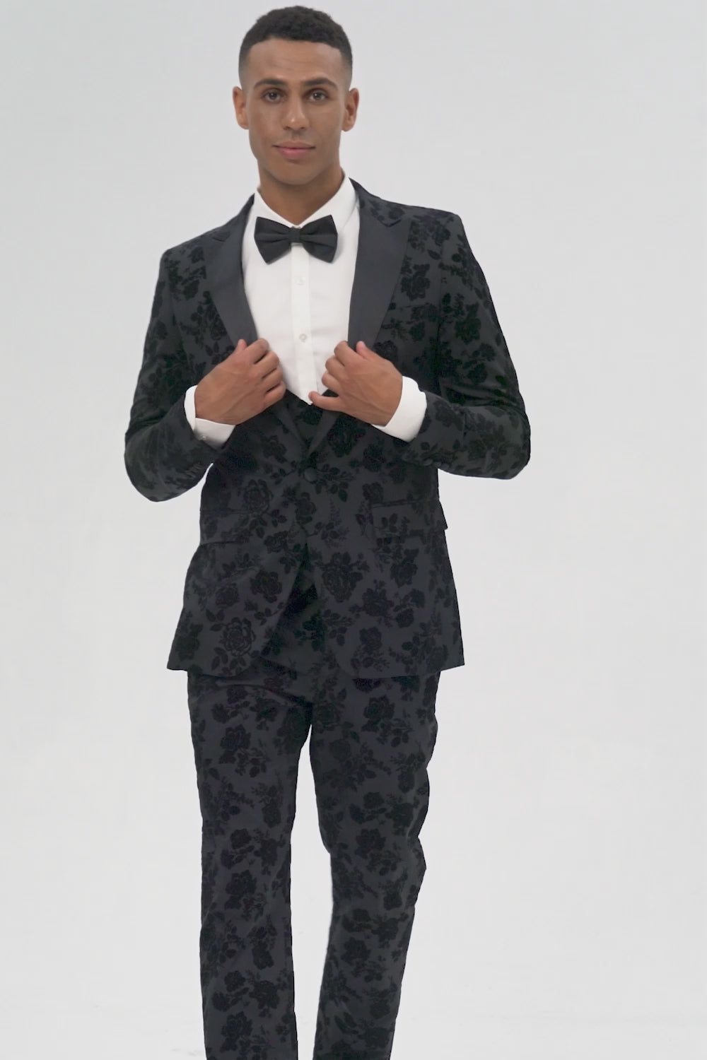 Black Peak Lapel 3 Pieces Floral Men's Suits