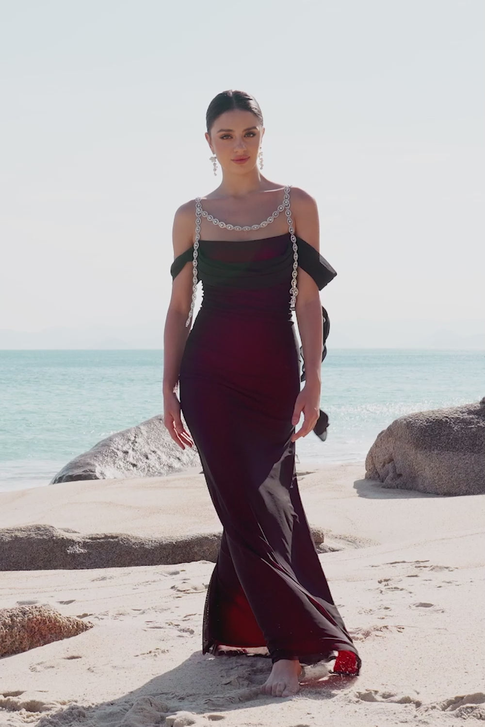 Black Red Mermaid Cold Shoulder Long Prom Dress