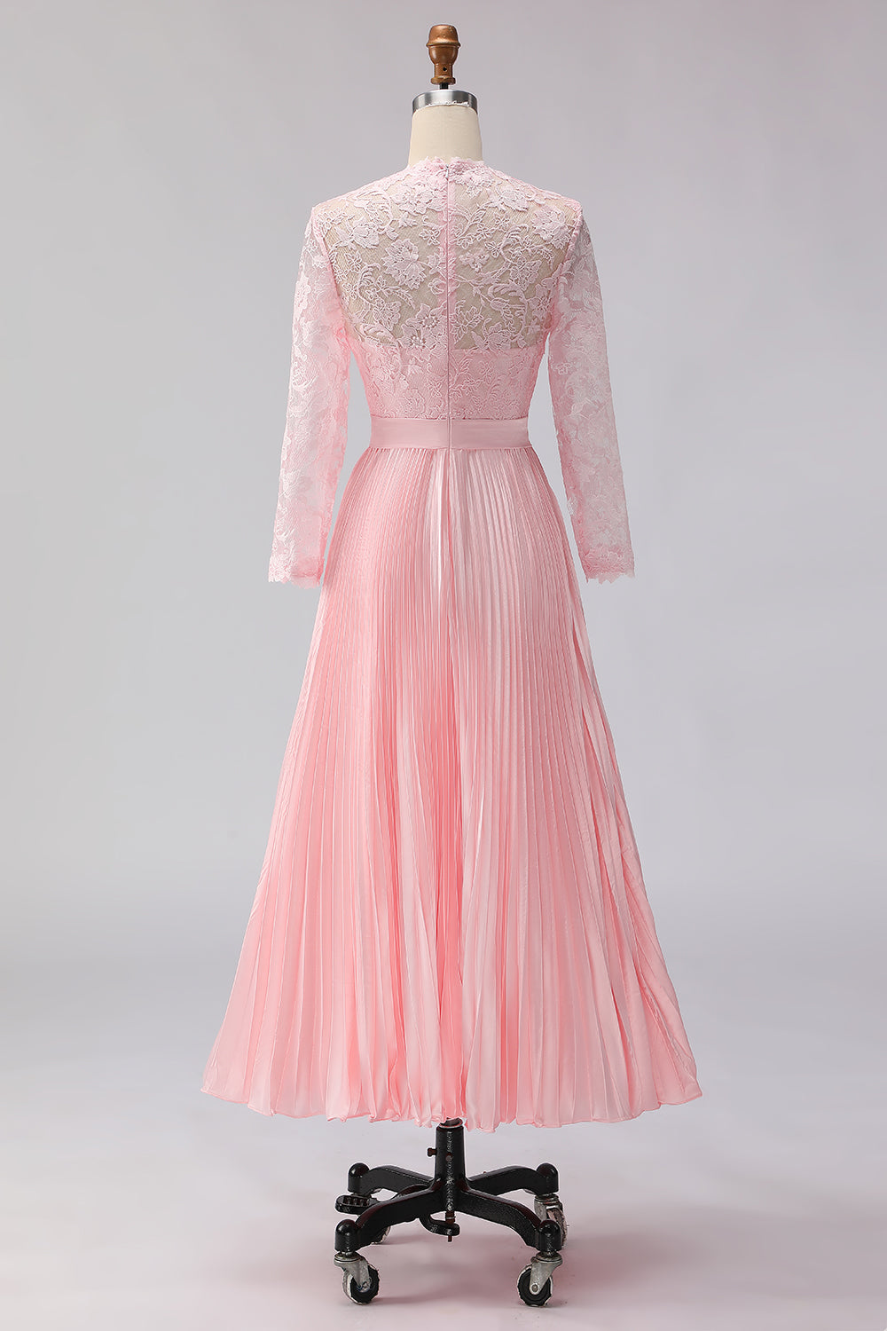 Blush Pink Pleated A Line Chiffon Midi Mother of the Bride Dress with Lace