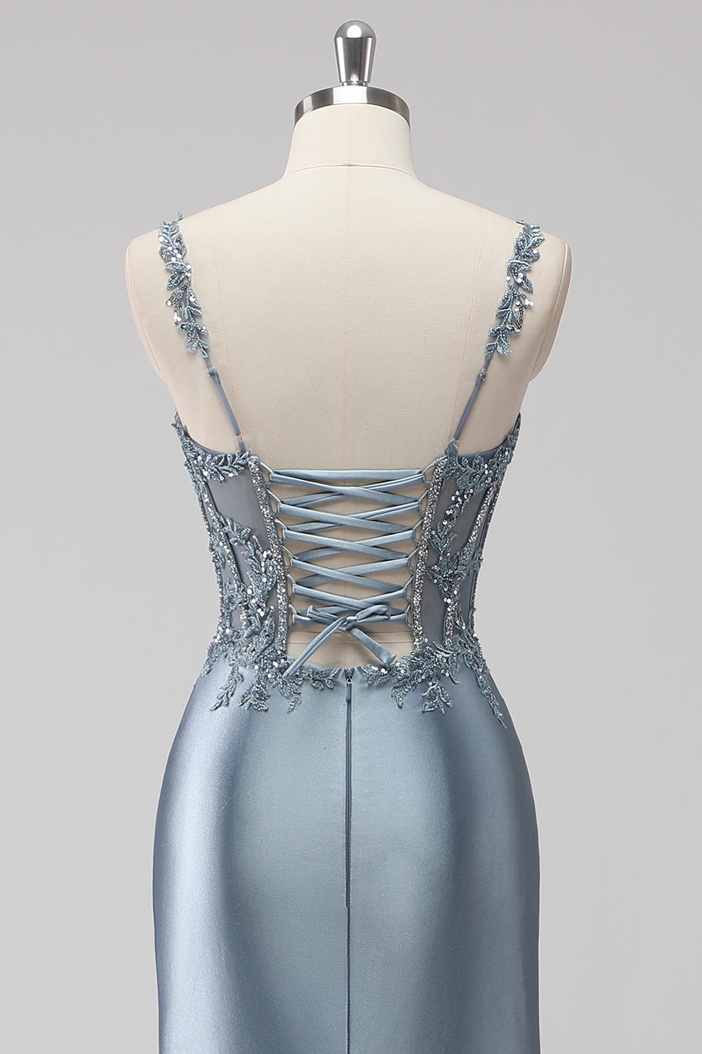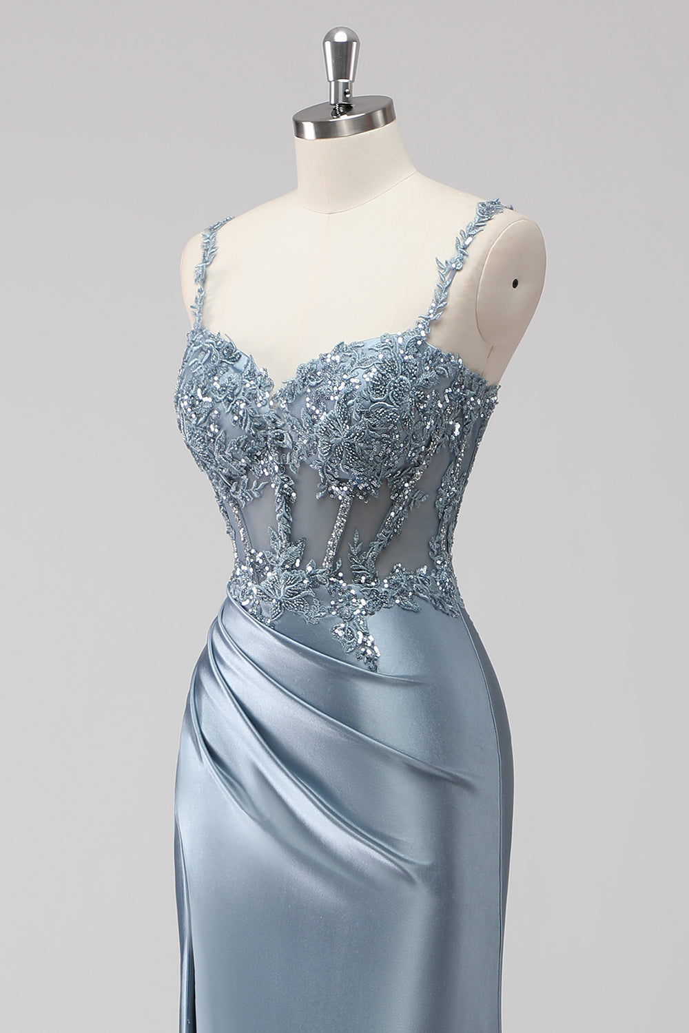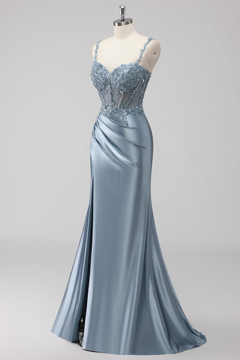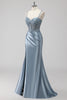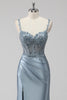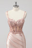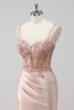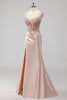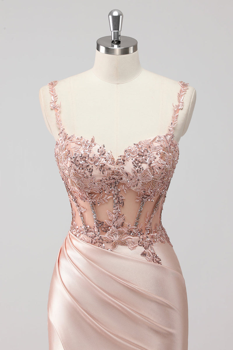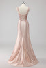 Blush Satin Mermaid Sequin Long Prom Dress with Slit