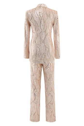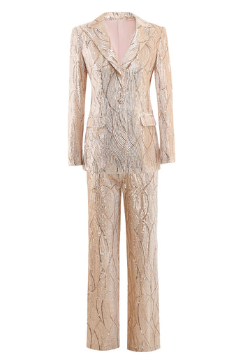 Champagne Peak Lapel Single Button Sequin Women's Suits