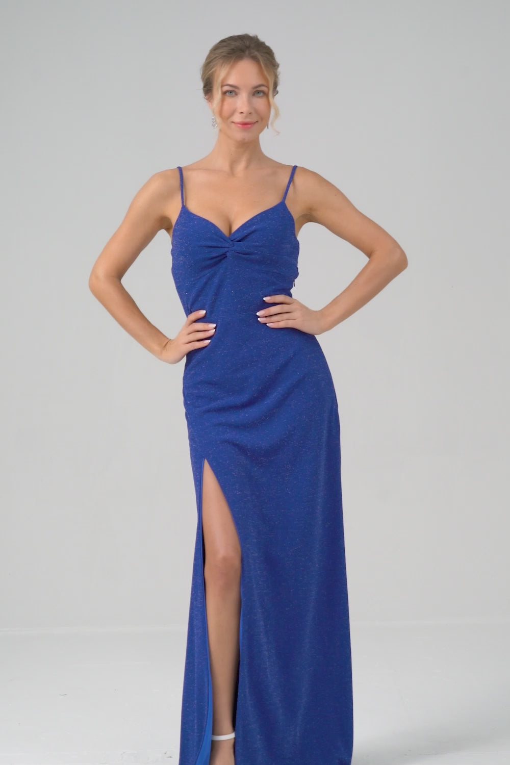 Dark Blue Sparkly Twist Front Mermaid Bridesmaid Dress with Slit