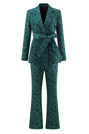 Dark Green 2 Piece 3D Flowers Women's Formal Suits with Belt