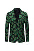 Dark Green Leaf Printed Notched Lapel Men's Blazer