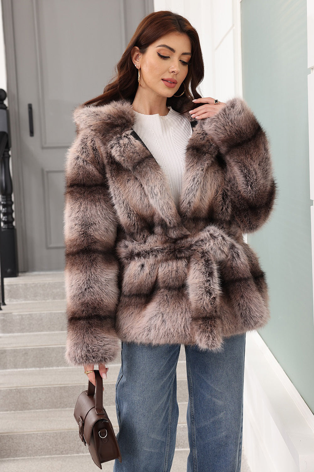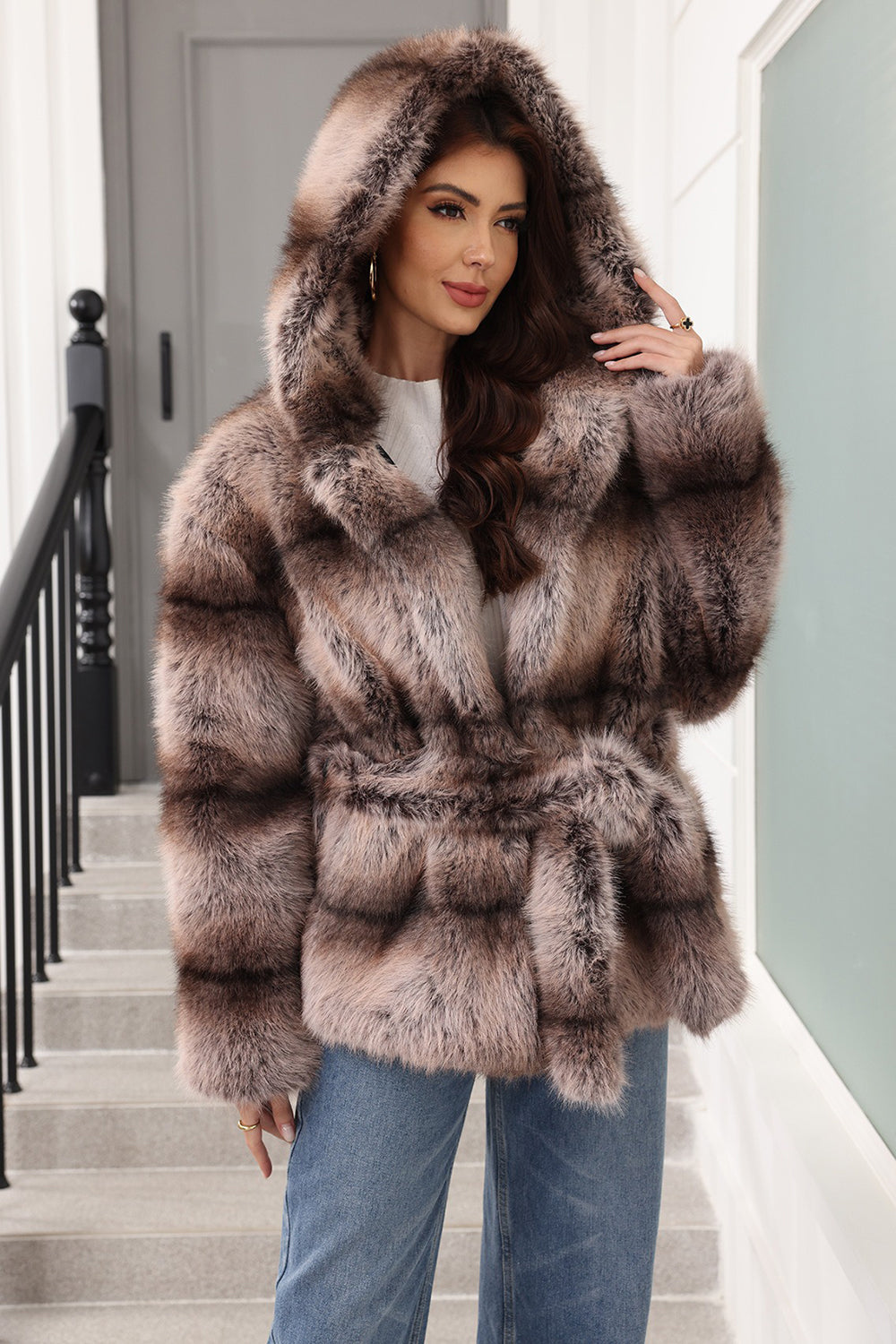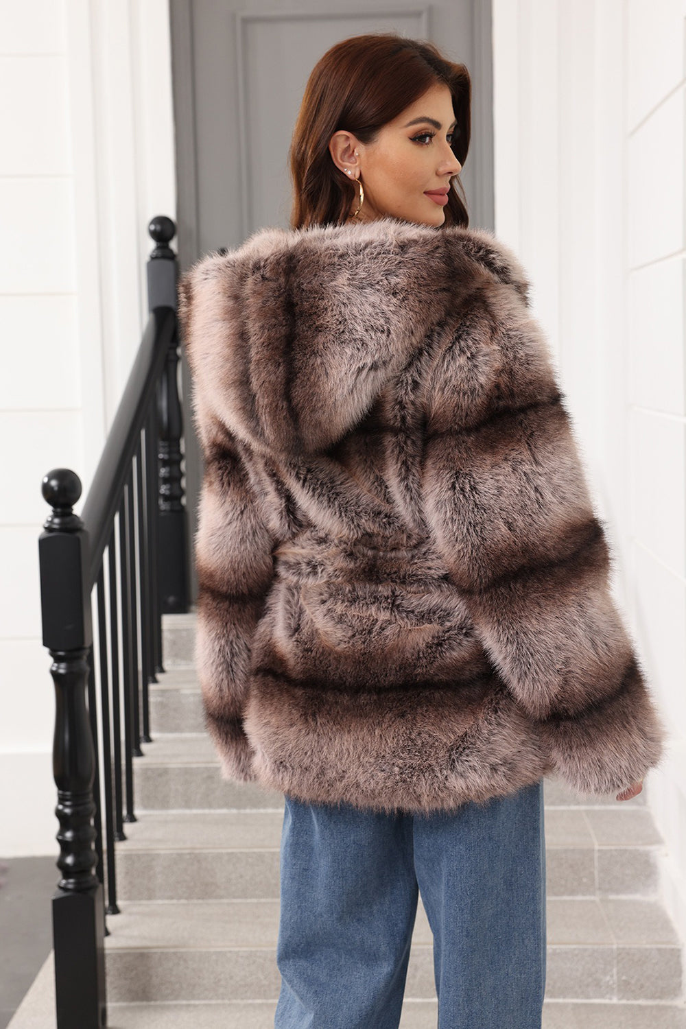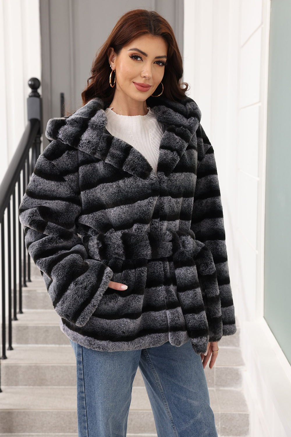 Hooded Faux Fur Steel Grey Thickened Women Coat