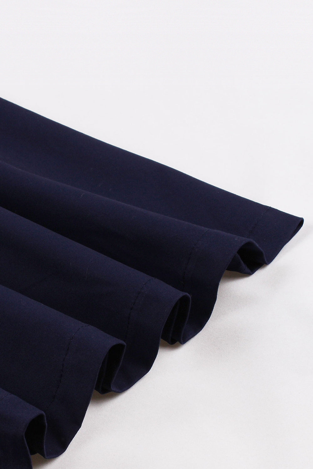 Navy Houndstooth Belted Long Sleeves 1950s Dress
