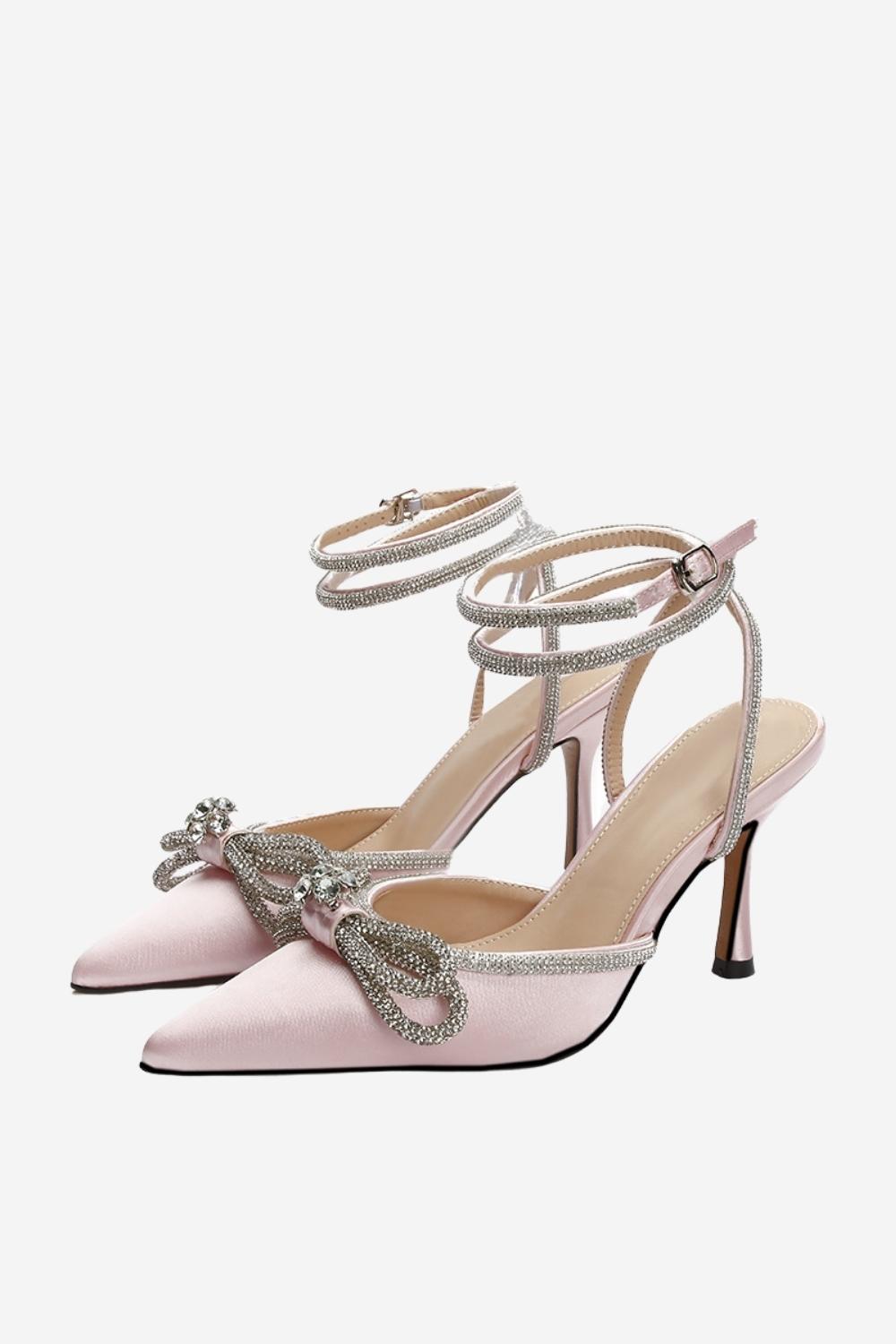 Rhinestone Black Party Pointed Toe Stiletto Sandals