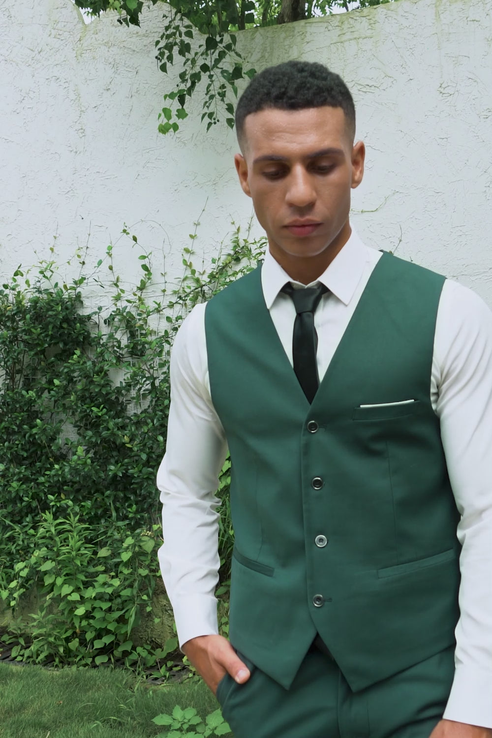 Dark Green Shawl Lapel One Button 3 Pieces Men's Wedding Suits
