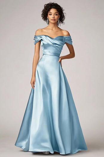 Sky Blue Off The Shoulder A Line Satin Formal Dress