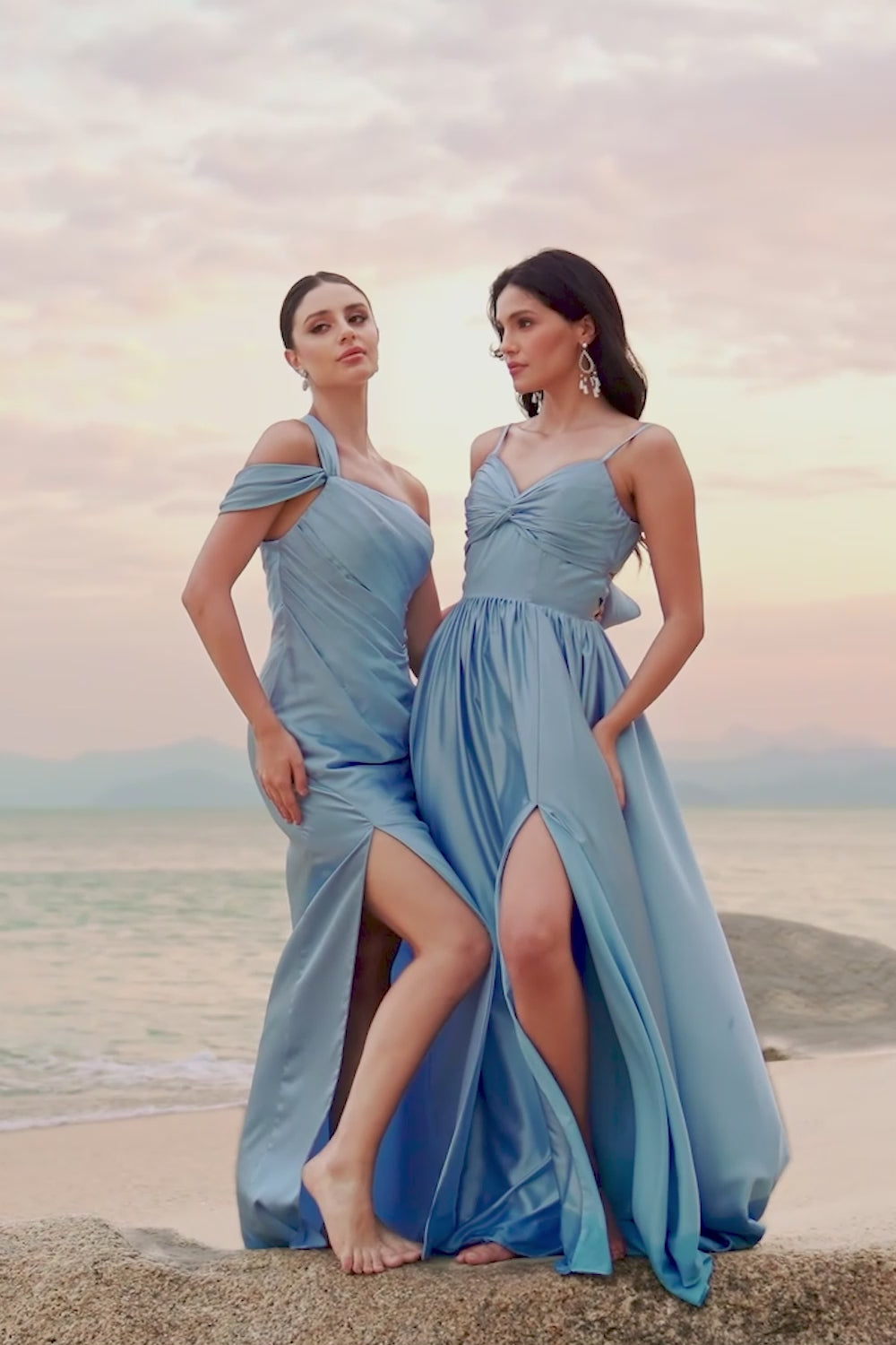 Sky Blue Spaghetti Straps A Line Long Bridesmaid Dress