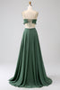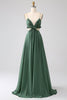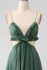 Spaghetti Straps Ruffles Green Hollow-out Long Bridesmaid Dress